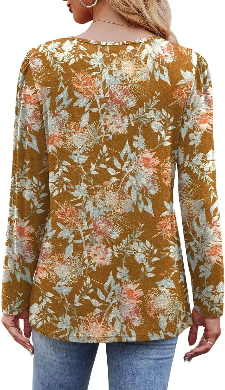 OFEEFAN Long Sleeve Shirts for Women Fall Fashion 2024 Dressy Casual Blouses Trendy Pleated Tunic Tops for Leggings