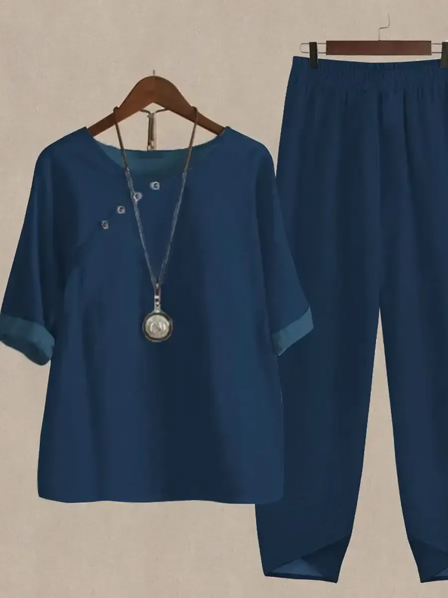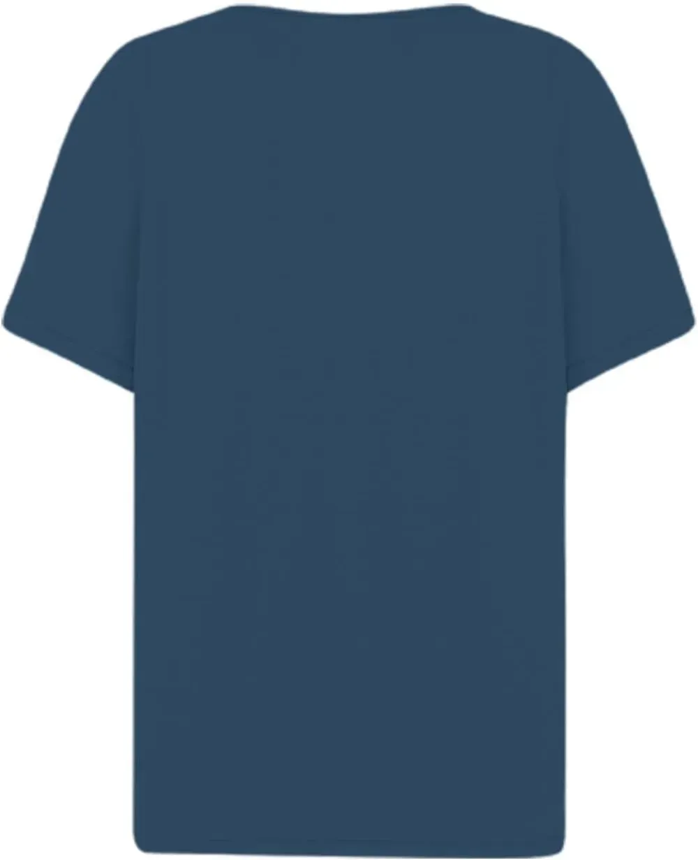 Peacock Blue Patchwork Short Sleeve Round Neck Blouse