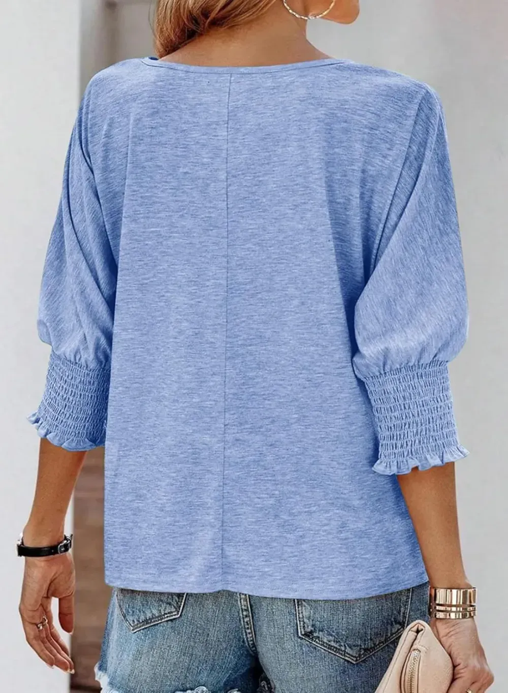 Light Yellow Patchwork 3/4 Sleeve Split Neck Blouse