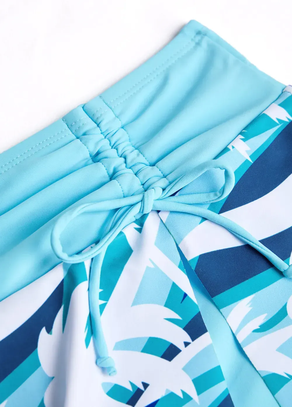 Cut Out Tropical Plants Print Cyan Tankini Set