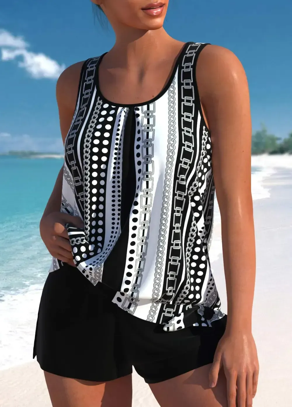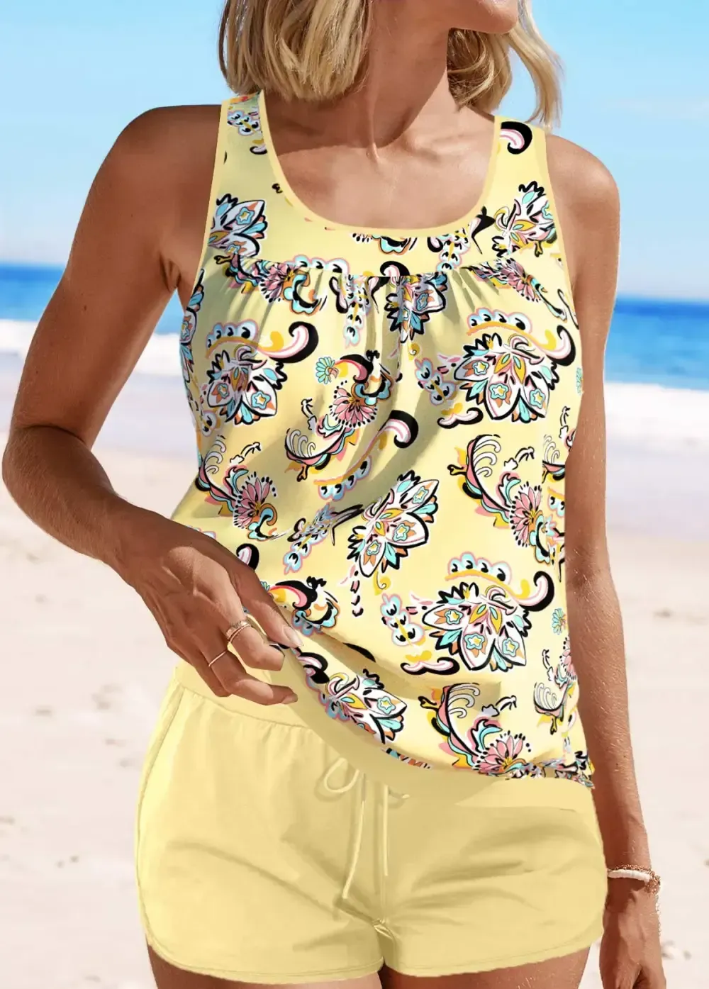 Criss Cross Mid Waisted Paisley Print Tankini Set