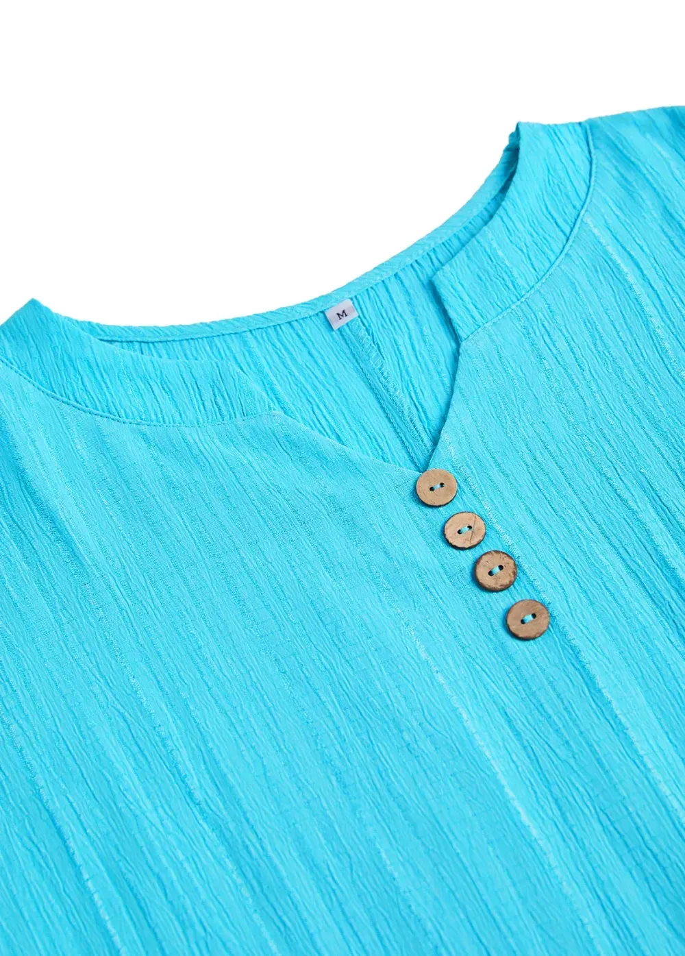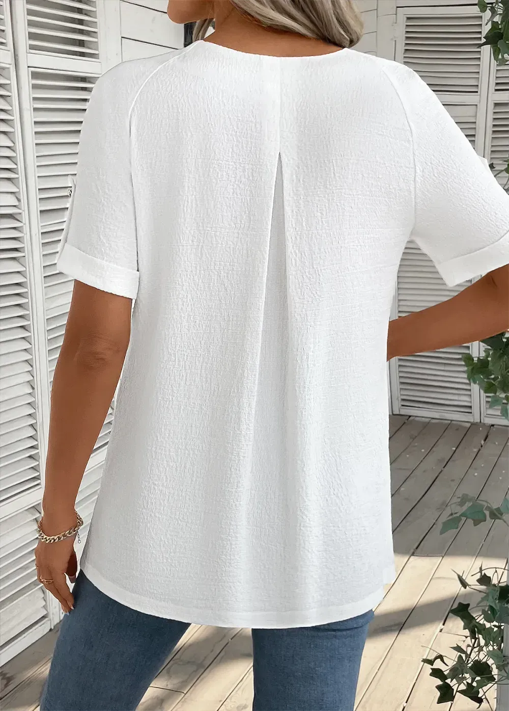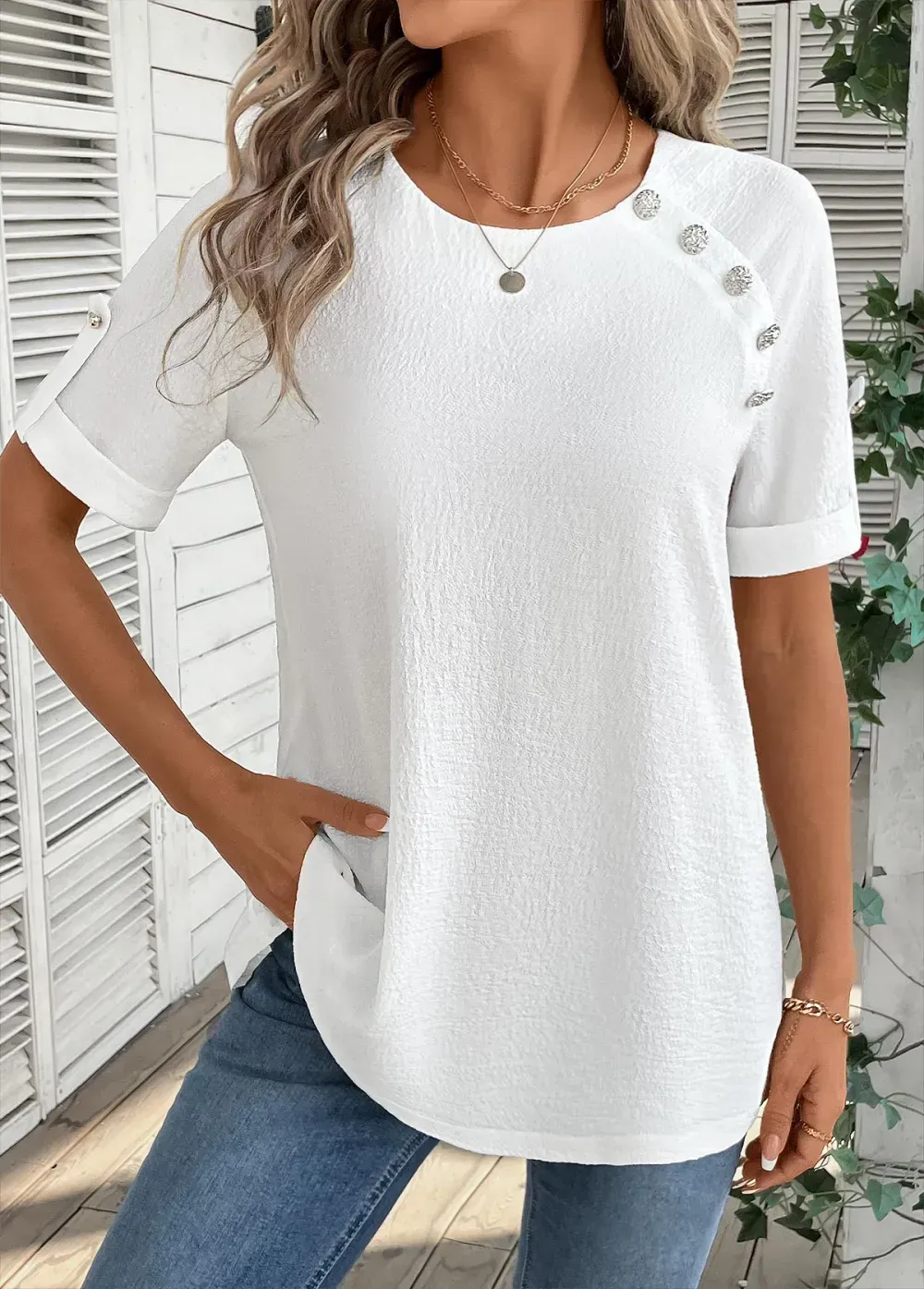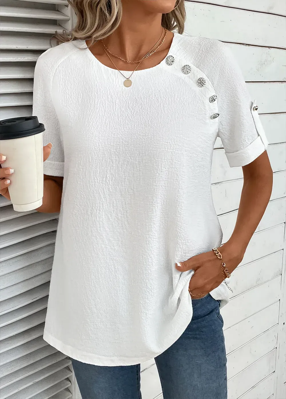 Bleaching White Button Short Sleeve Round Neck Blouse