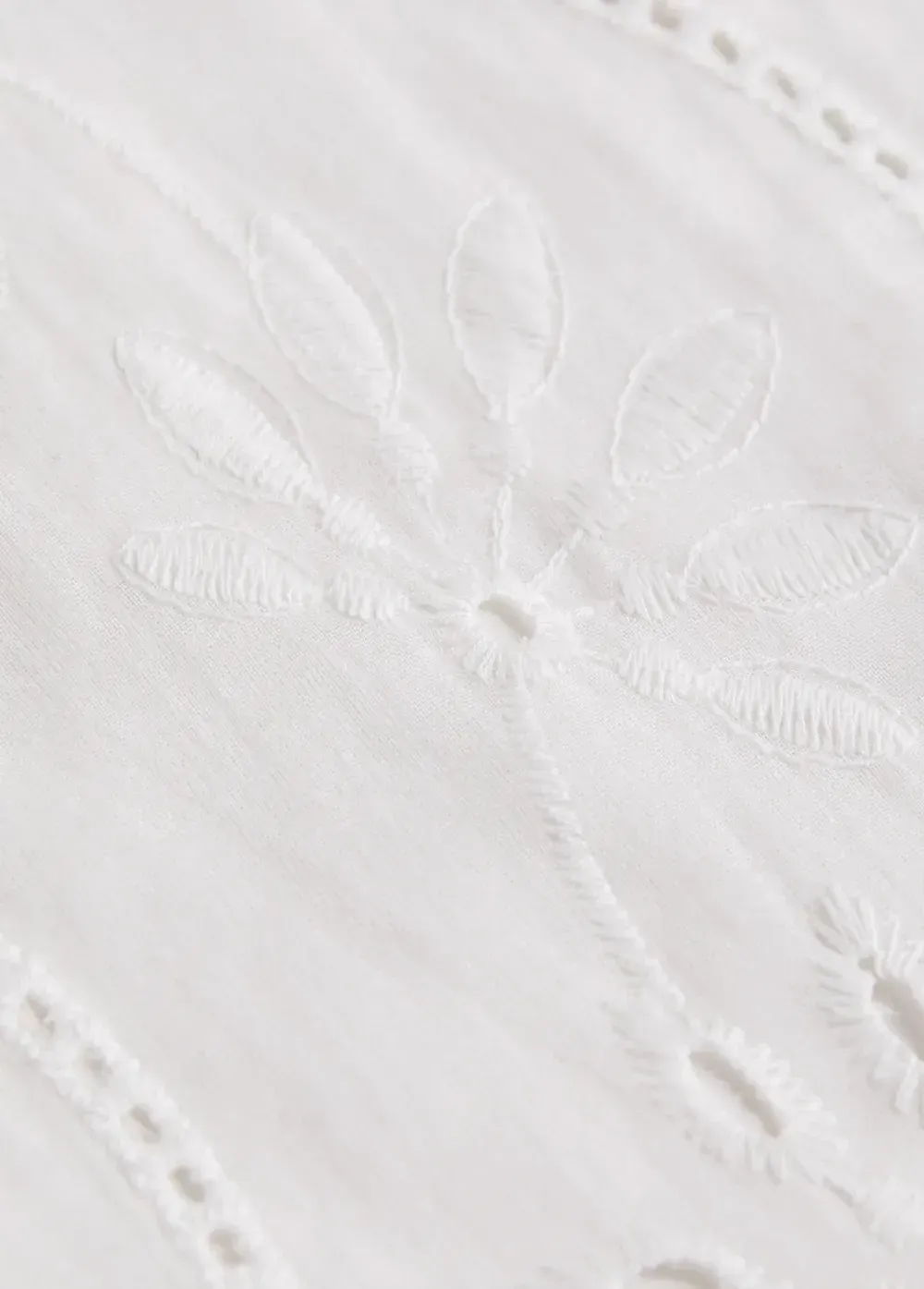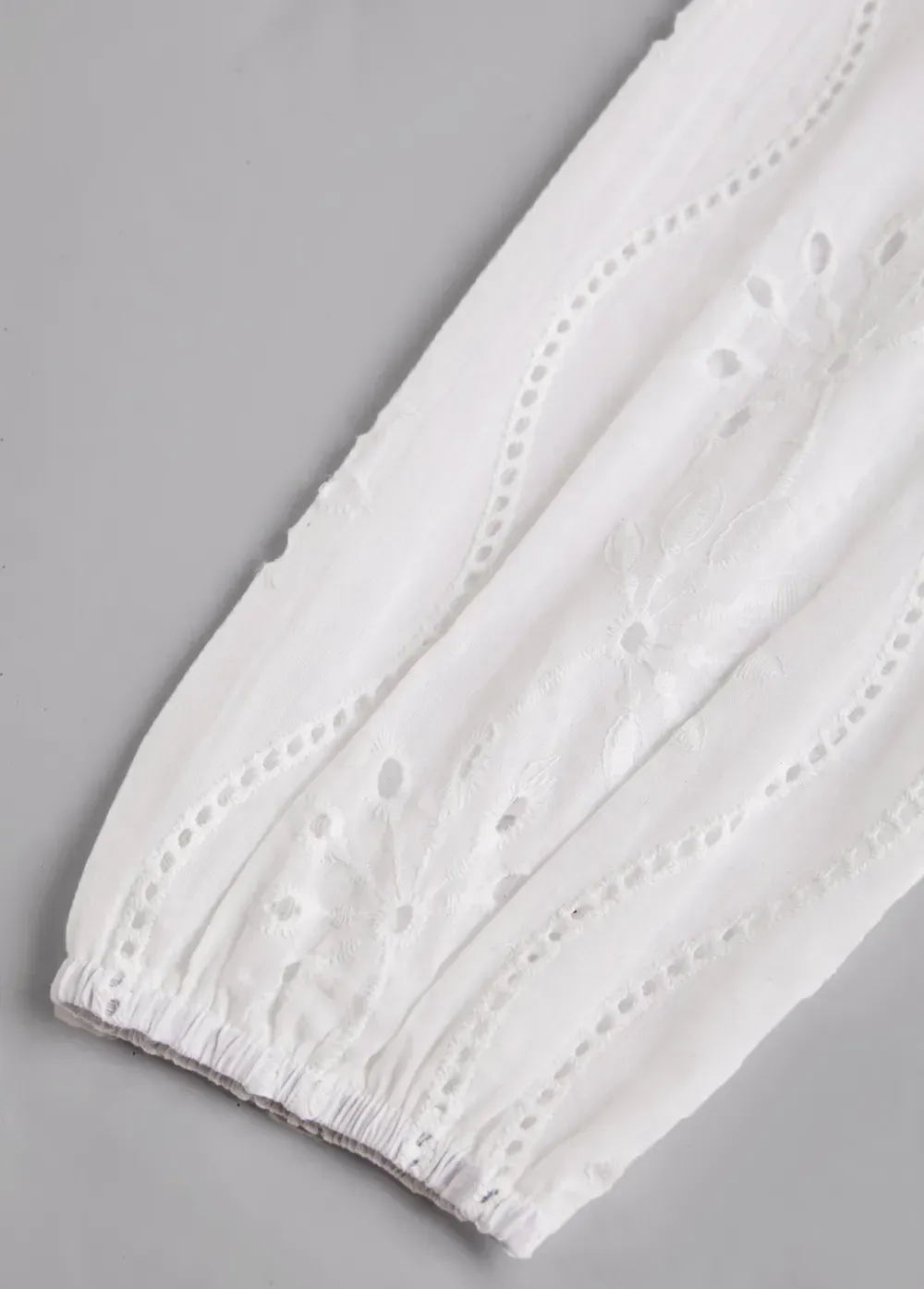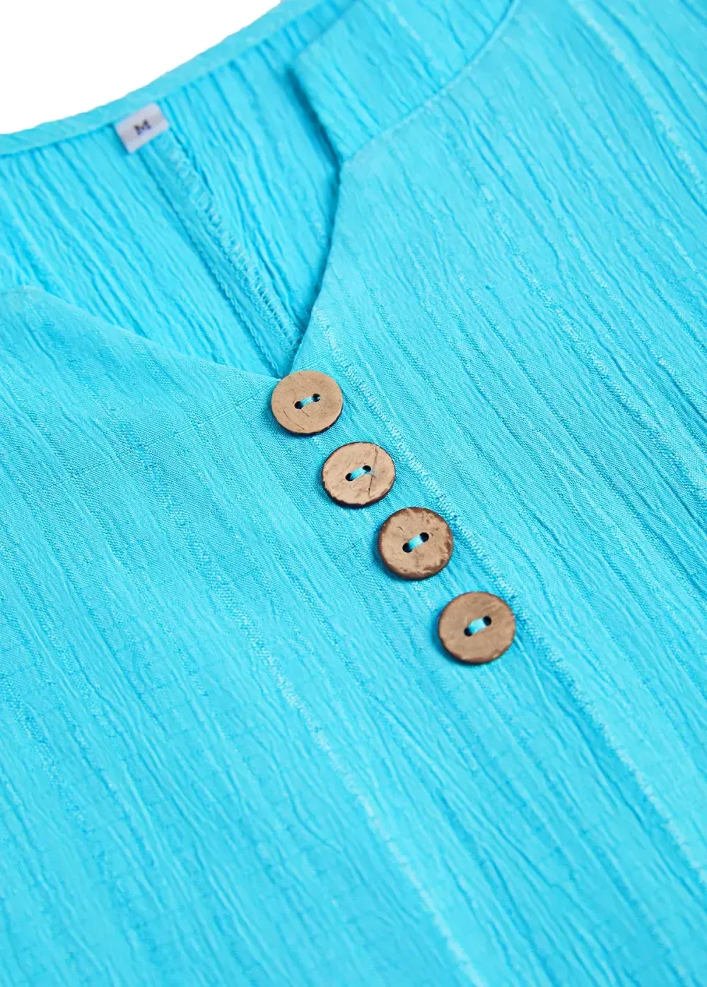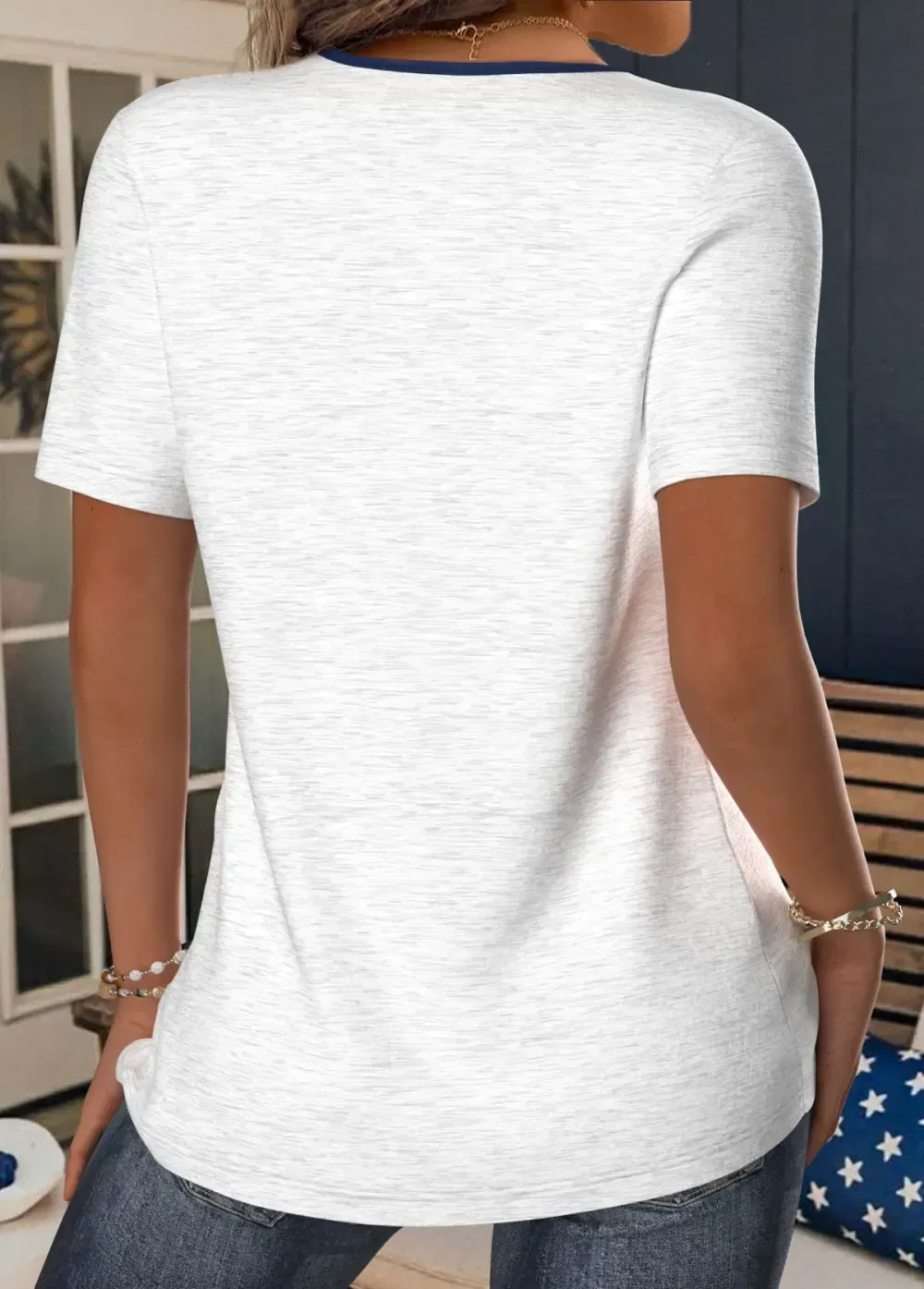 Bleaching White Button Short Sleeve Round Neck Blouse