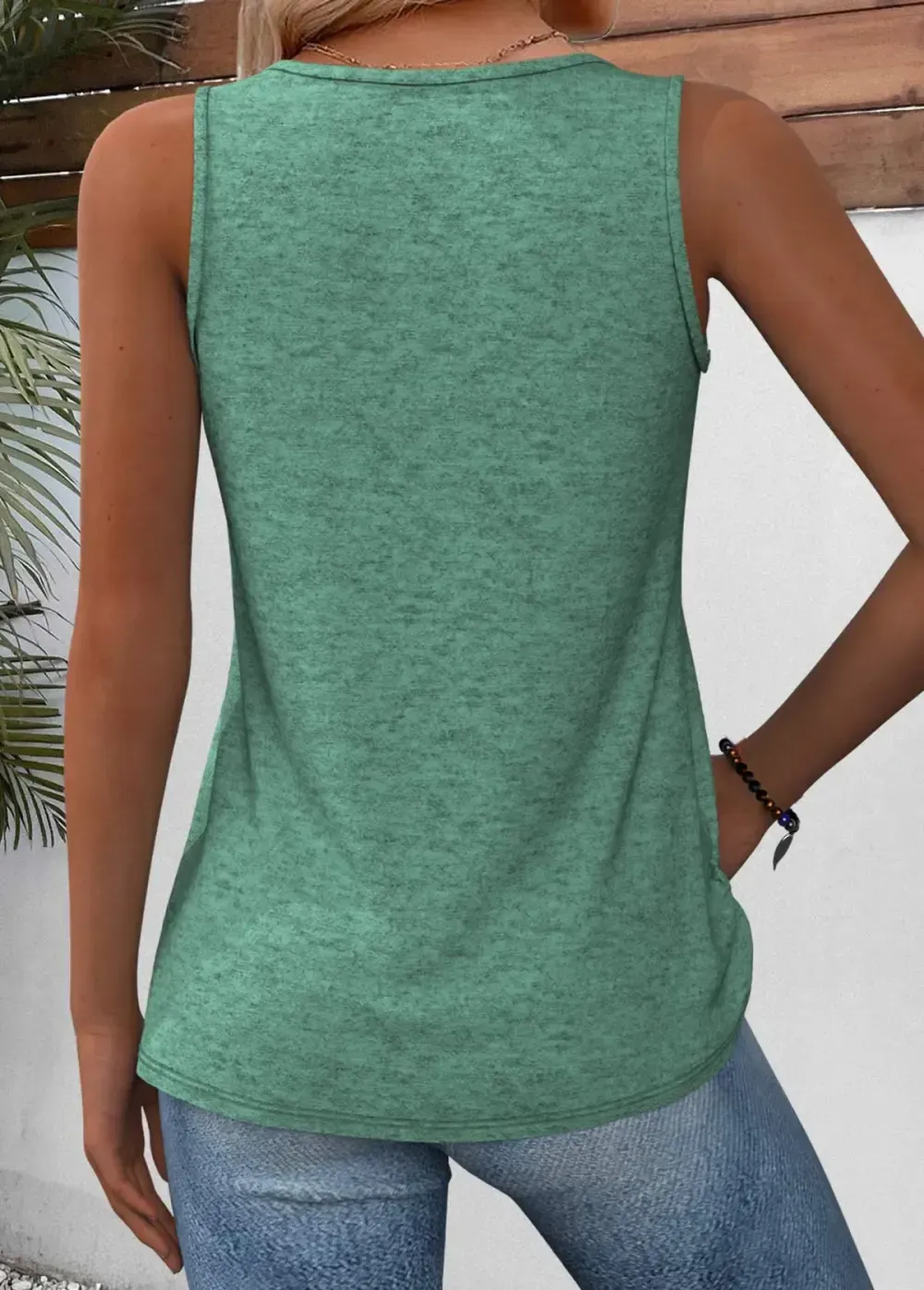 Light Blue Patchwork Floral Print Sleeveless Tank Top