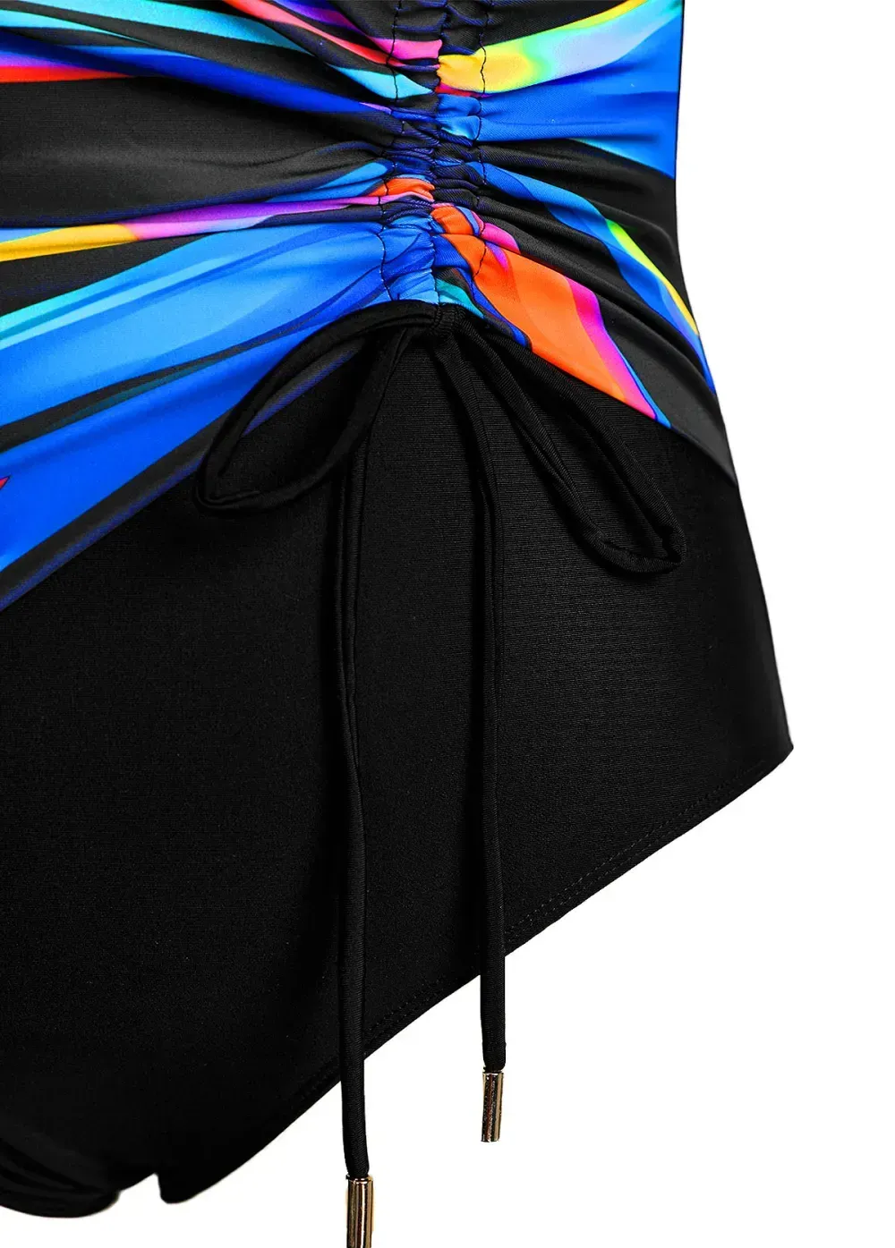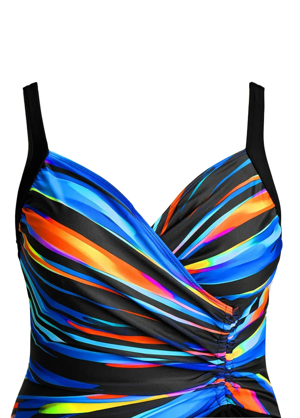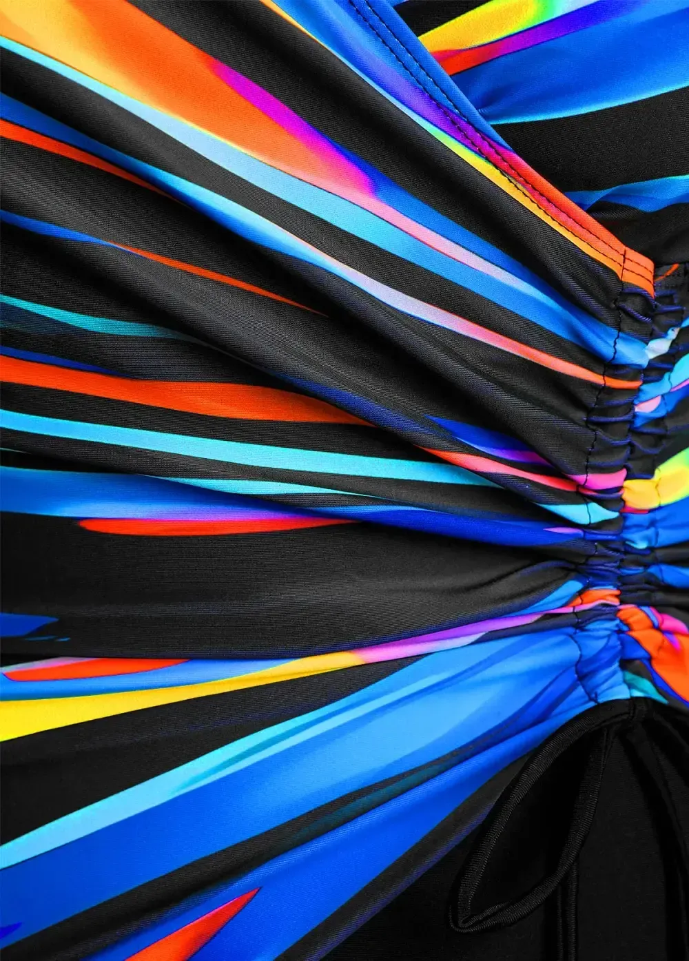 Surplice Dazzle Colorful Print Black One Piece Swimwear