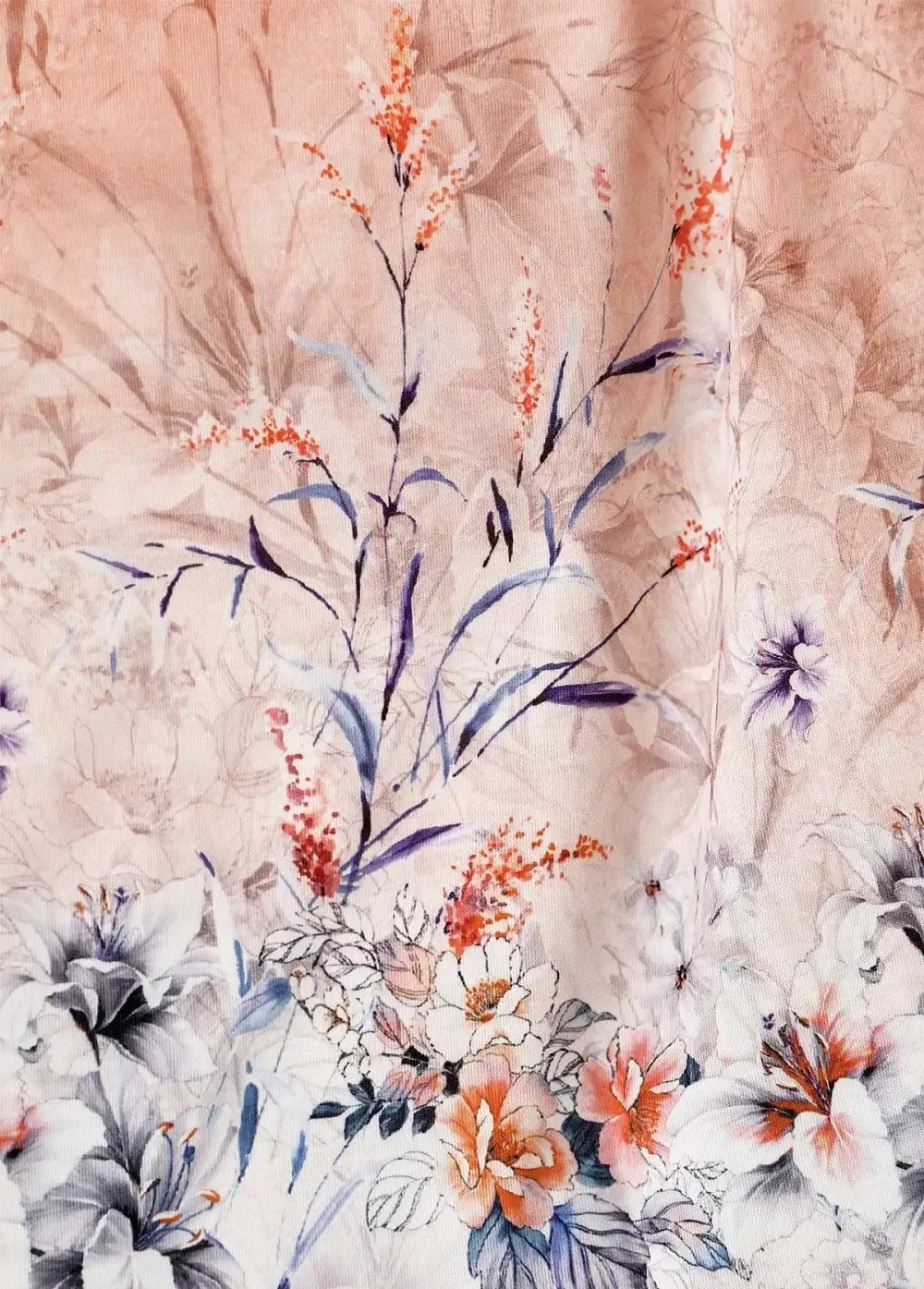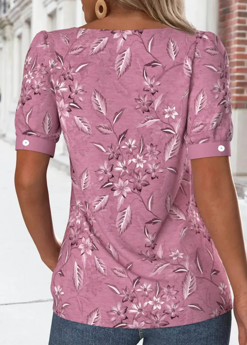 Dusty Pink Button Floral Print Short Sleeve T Shirt