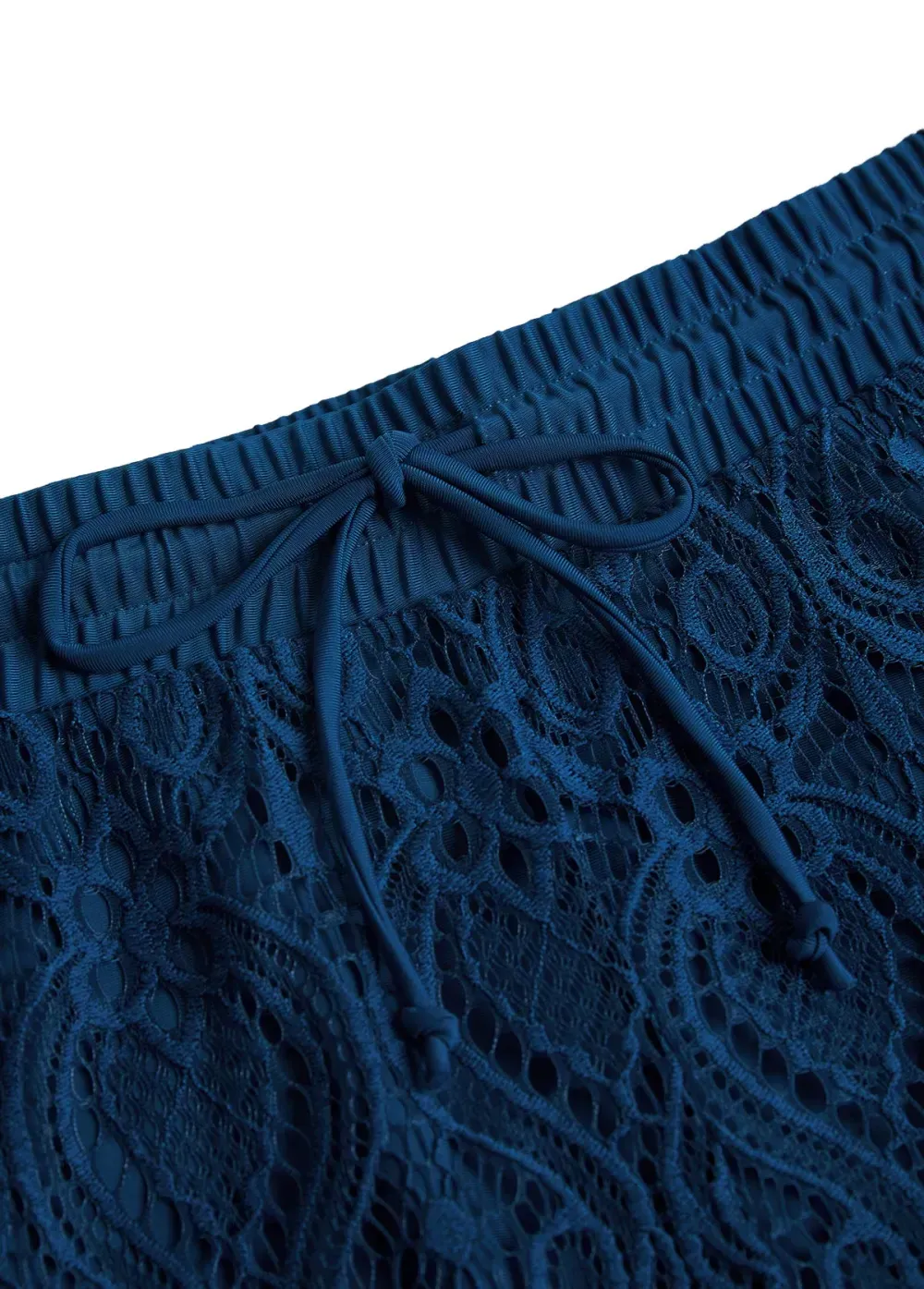 Scoop Neck Drawstring Royal Blue Bikini Set
