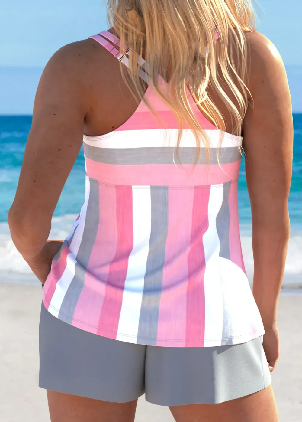 Criss Cross Multi Stripe Print One Piece Swimwear