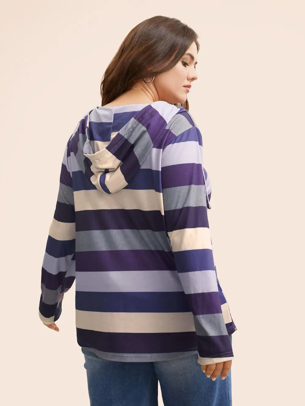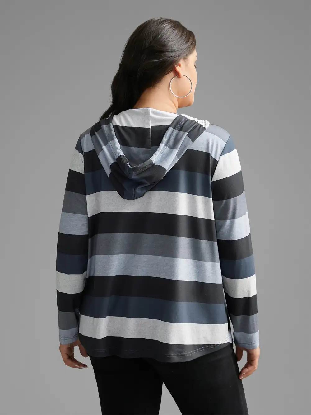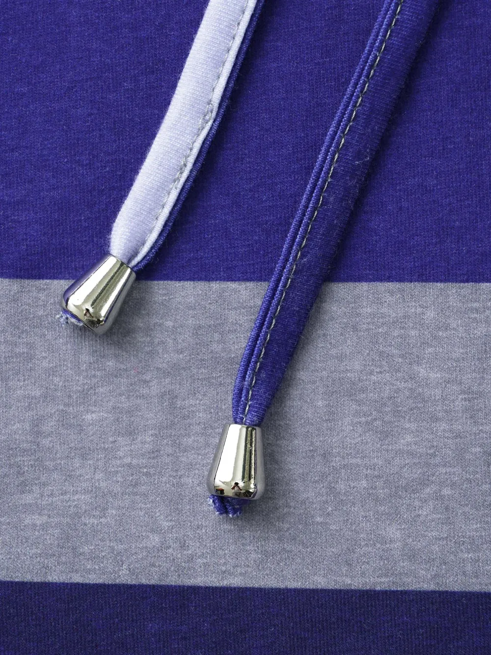 Contrast Cable Knit Pocket Hooded Drawstring Sweatshirt