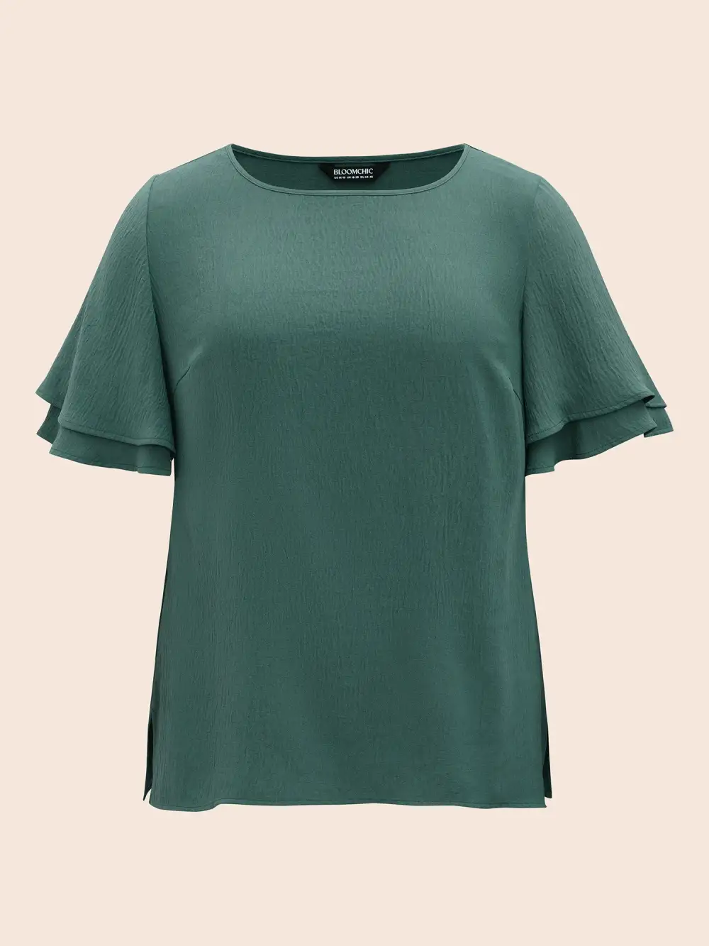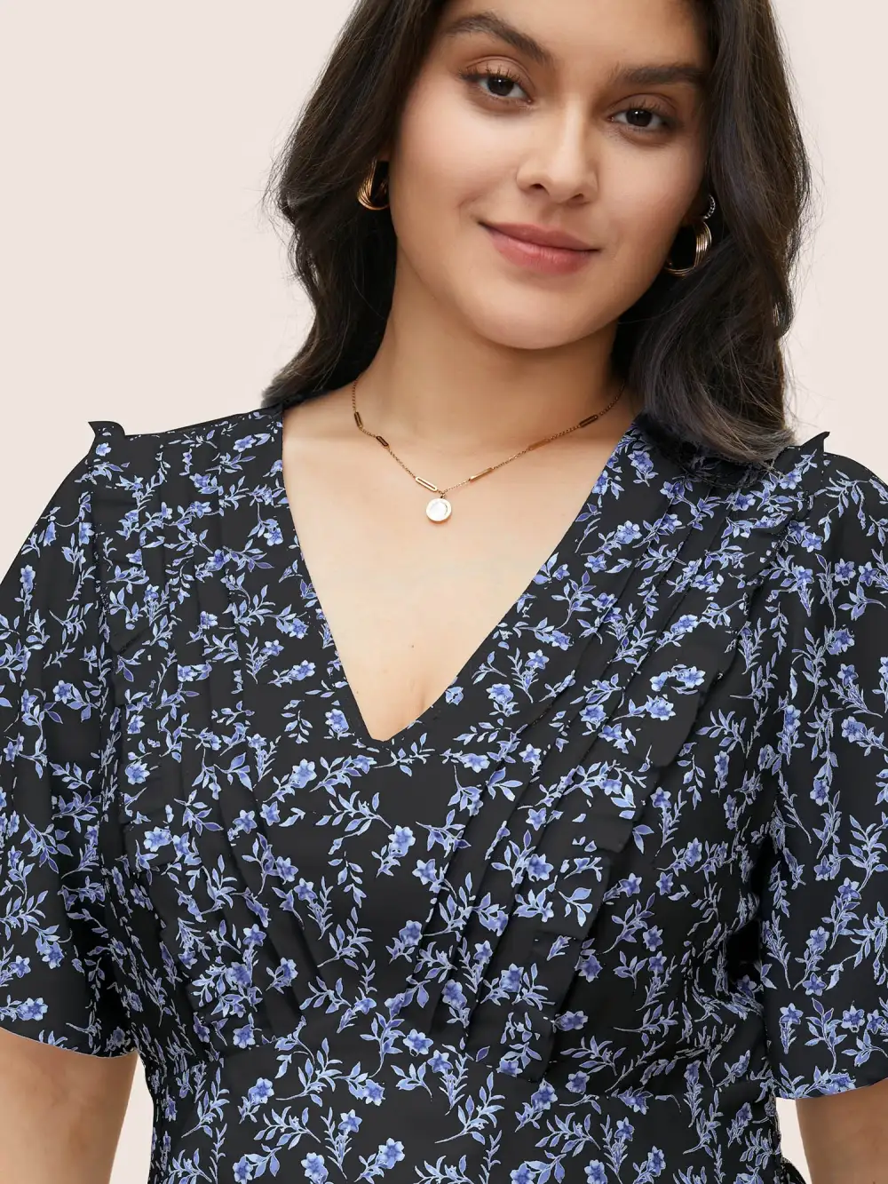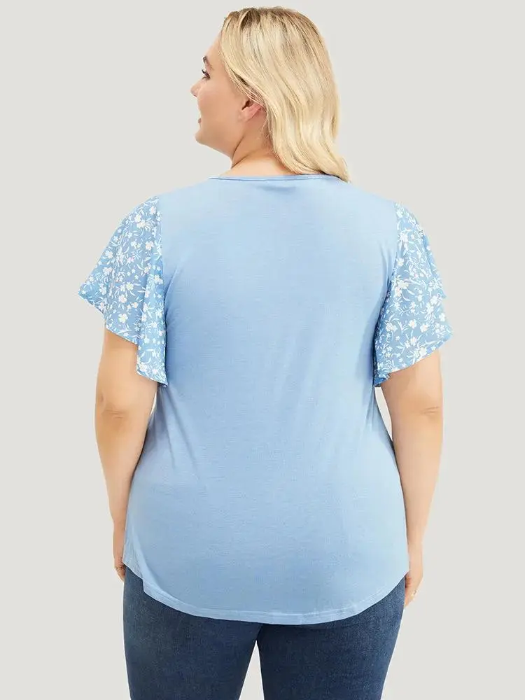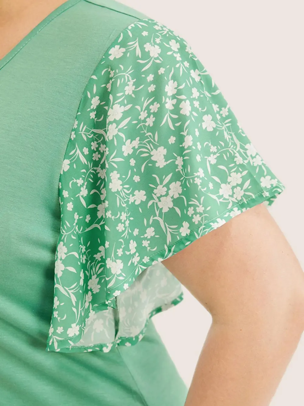 Ditsy Floral Ruffle Sleeve Round Neck T-shirt