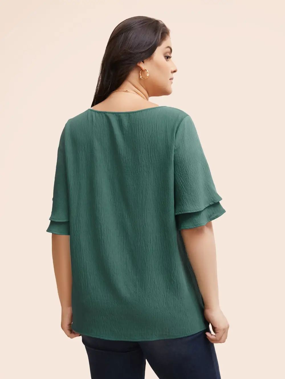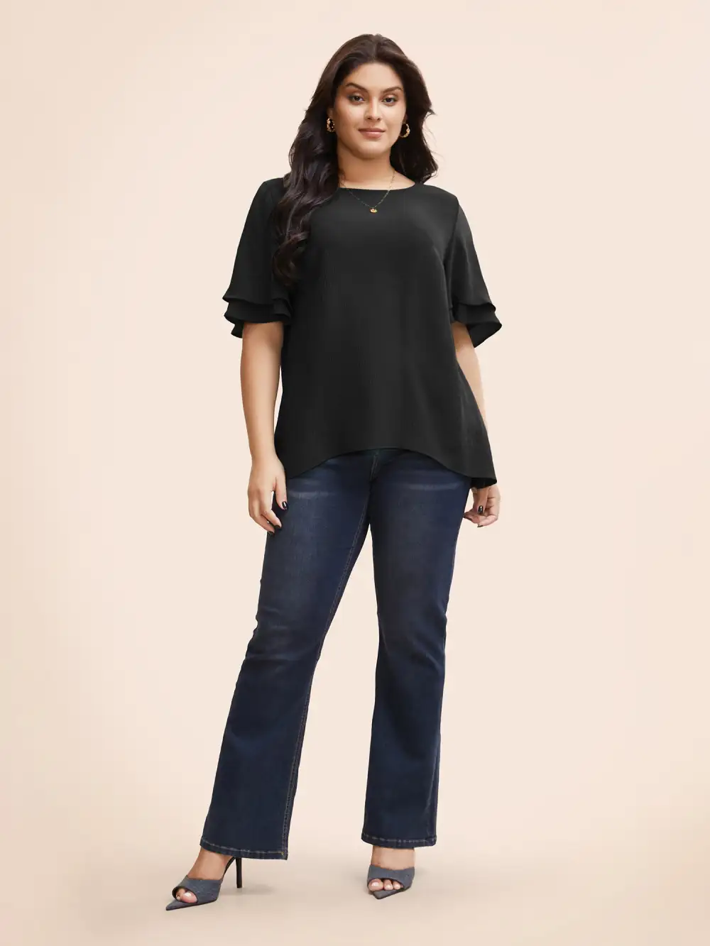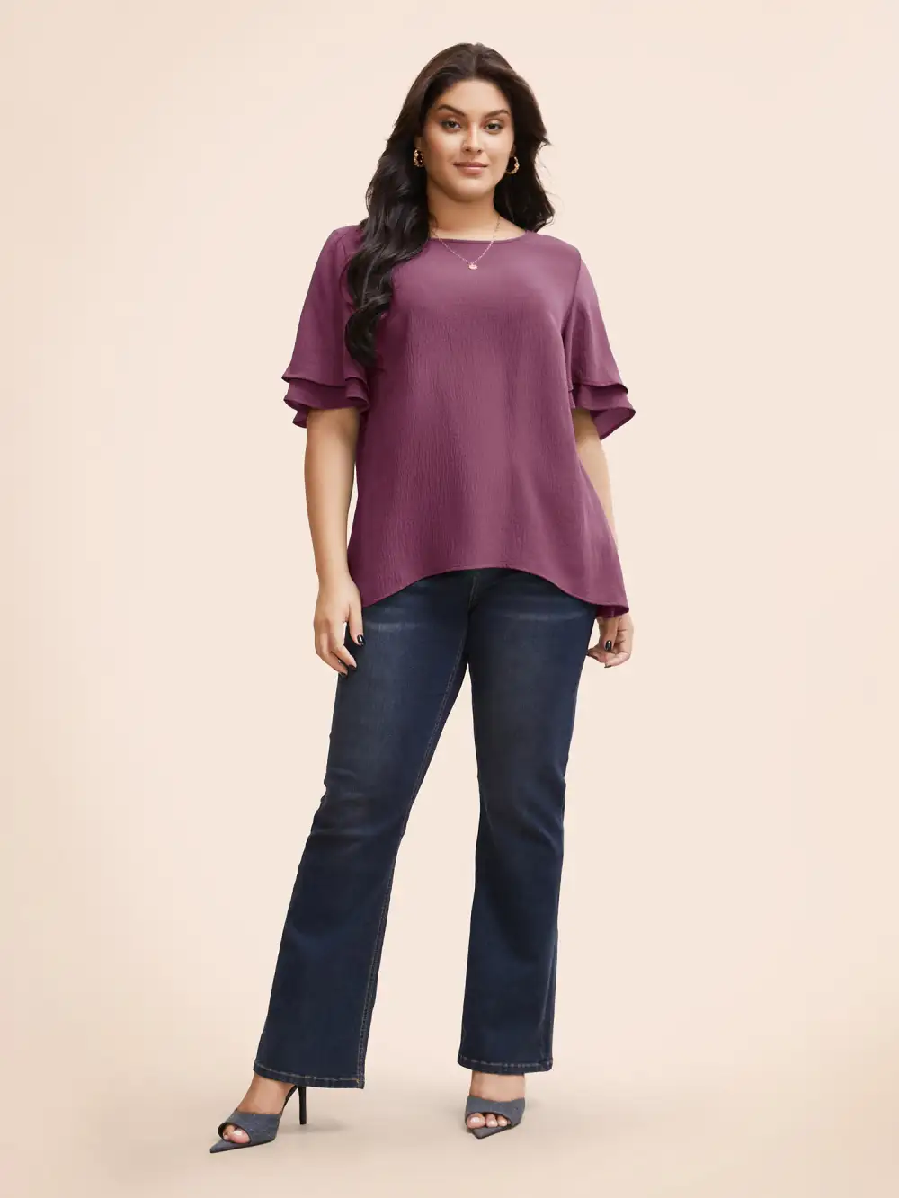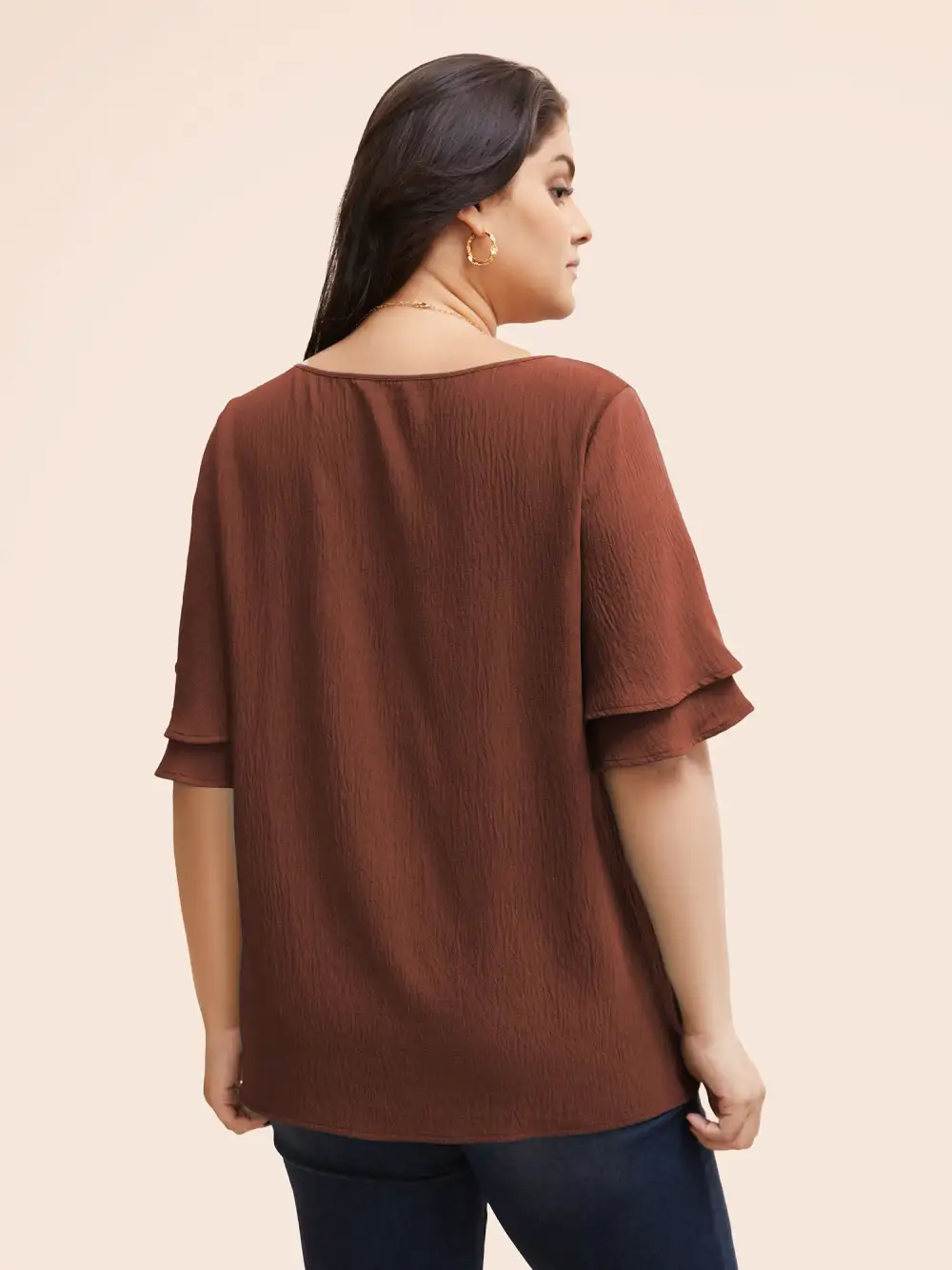 Ditsy Floral Ruffle Sleeve Round Neck T-shirt