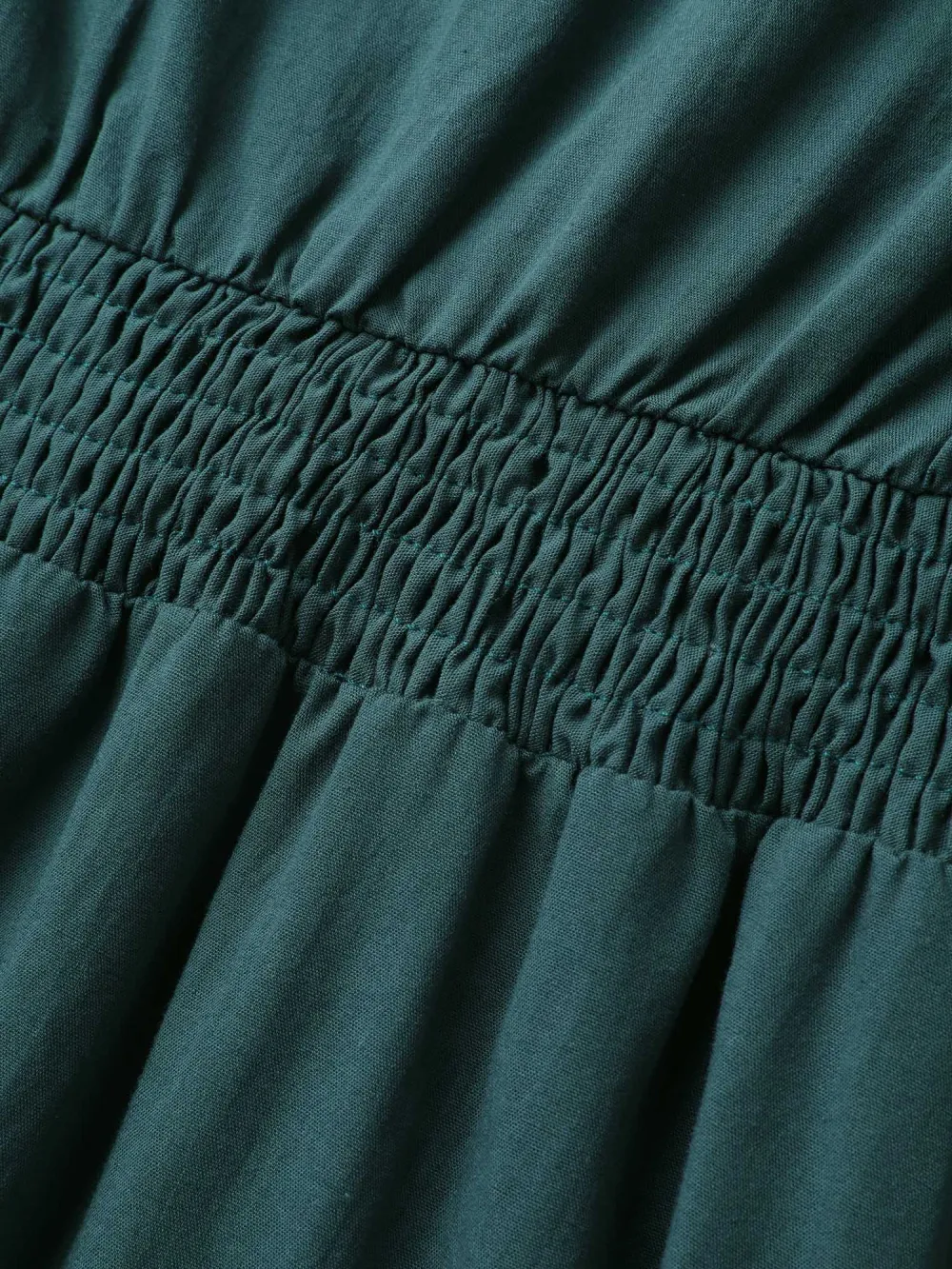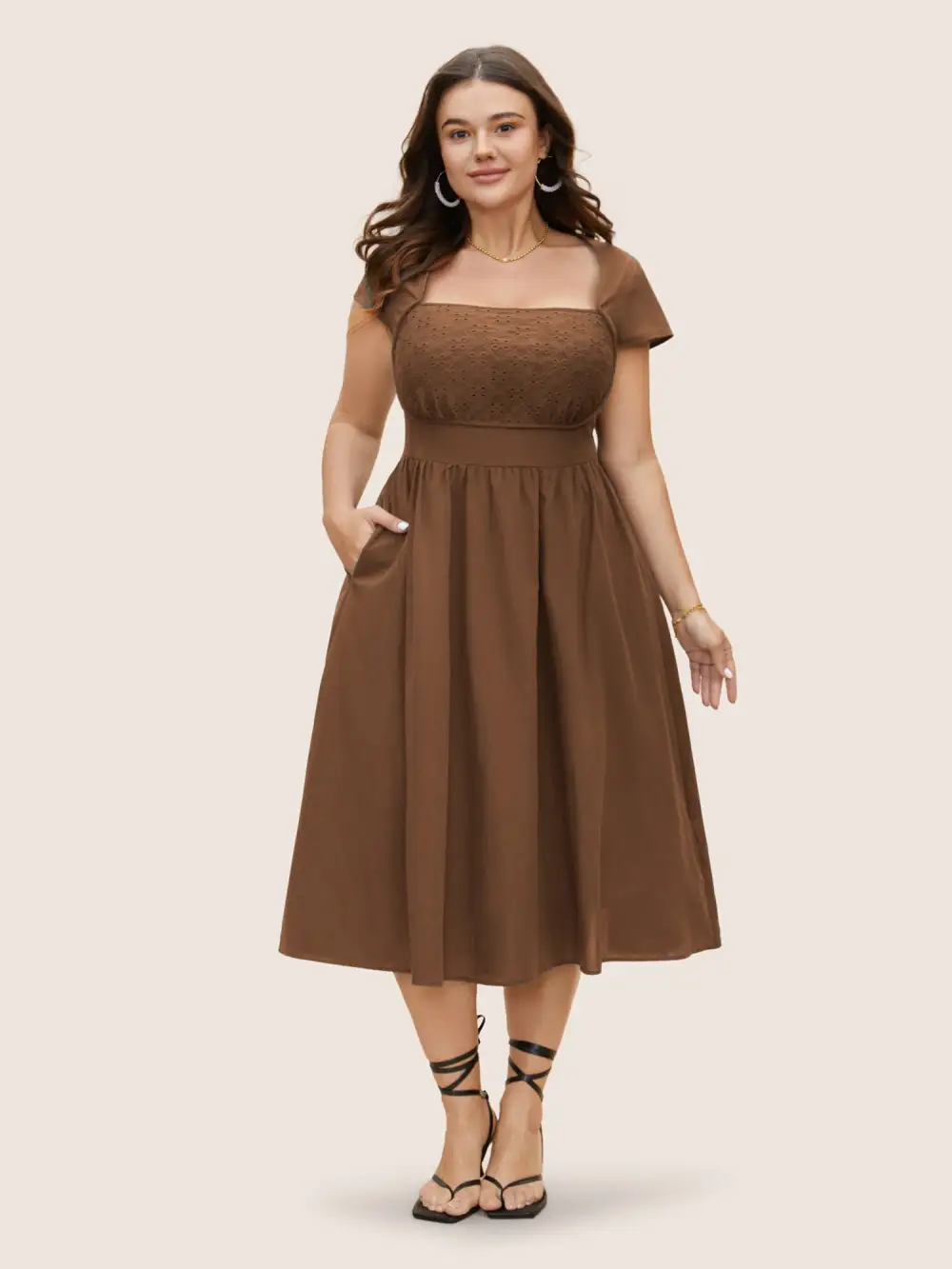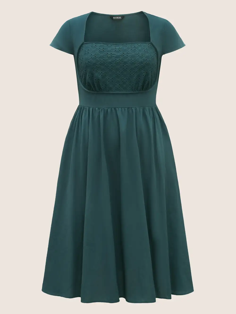 Solid Broderie Anglaise Shirred Tucked Seam Dress