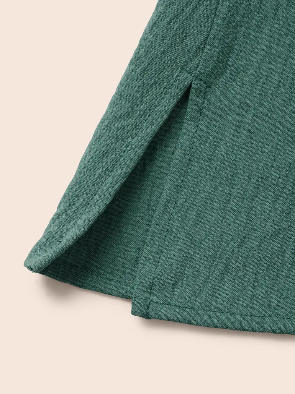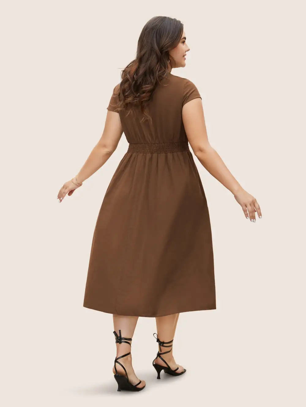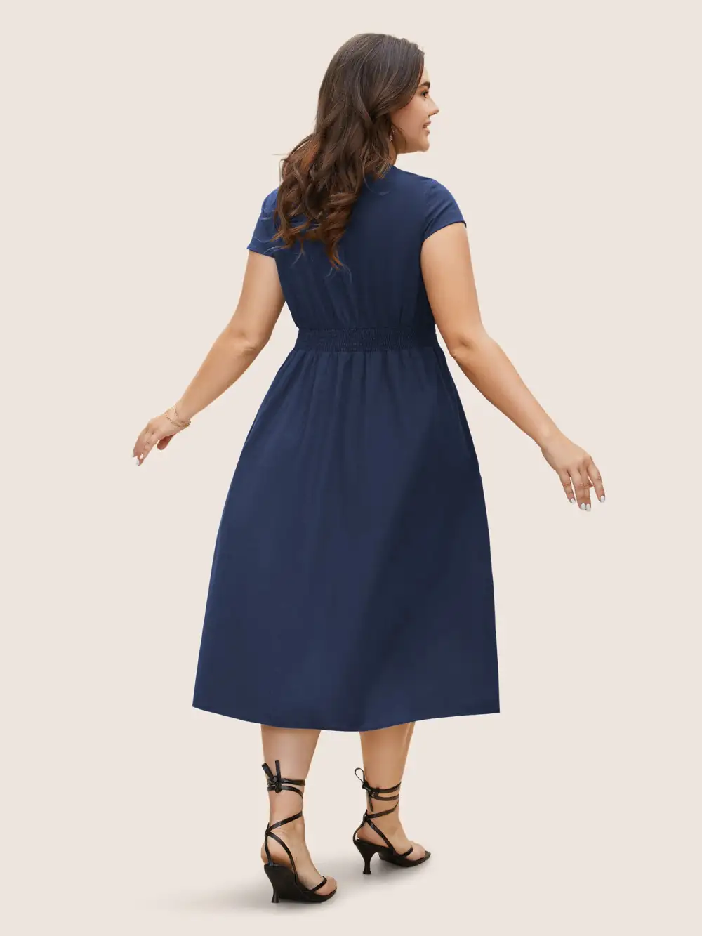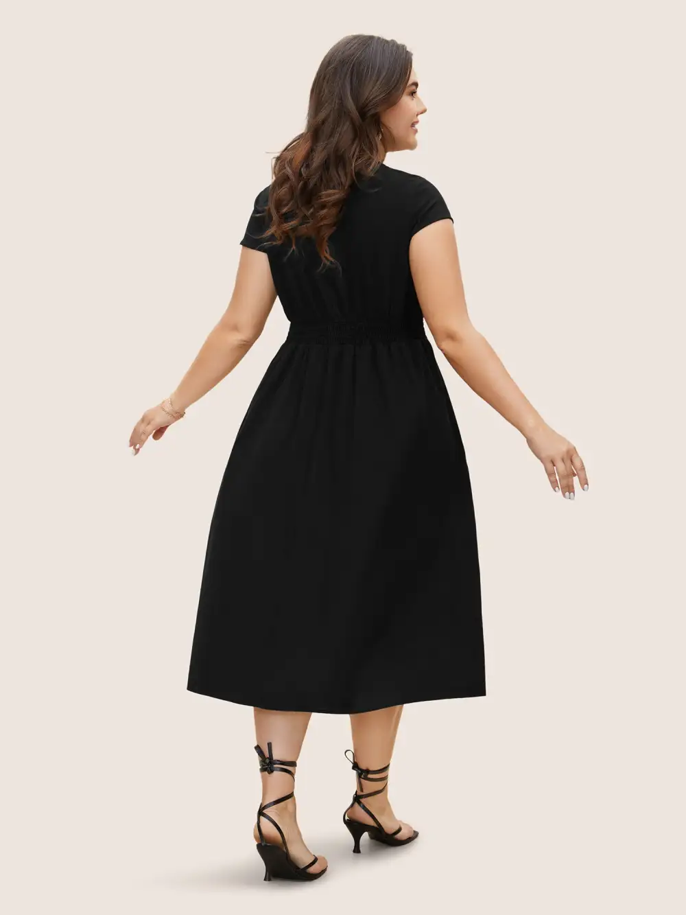 Solid Broderie Anglaise Shirred Tucked Seam Dress