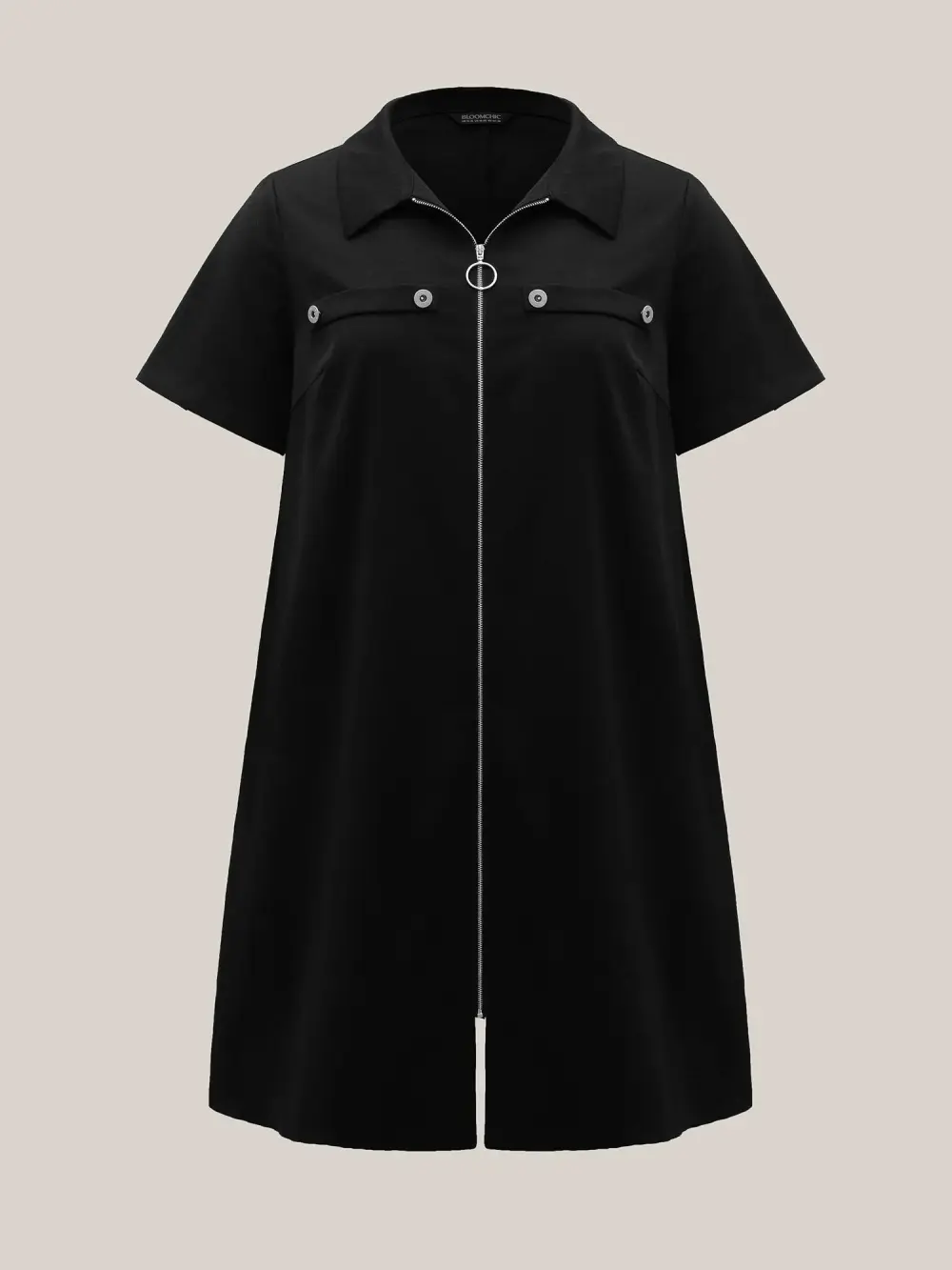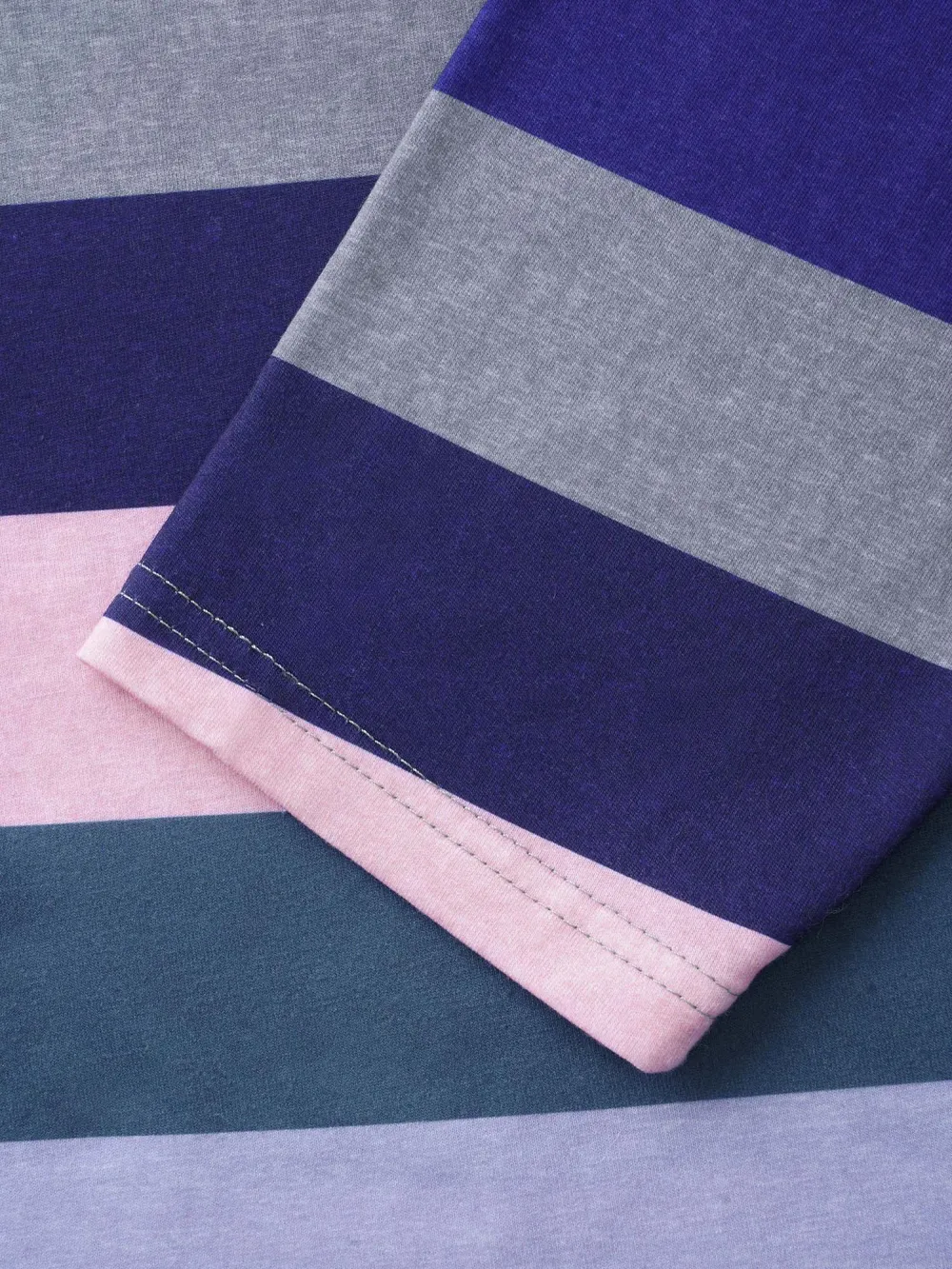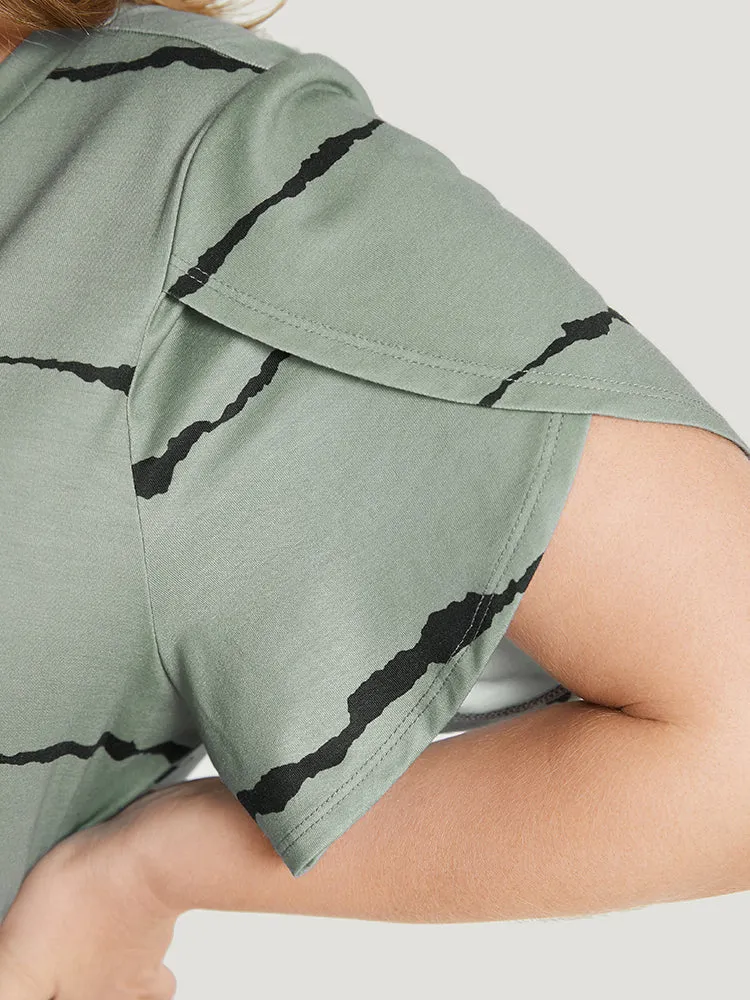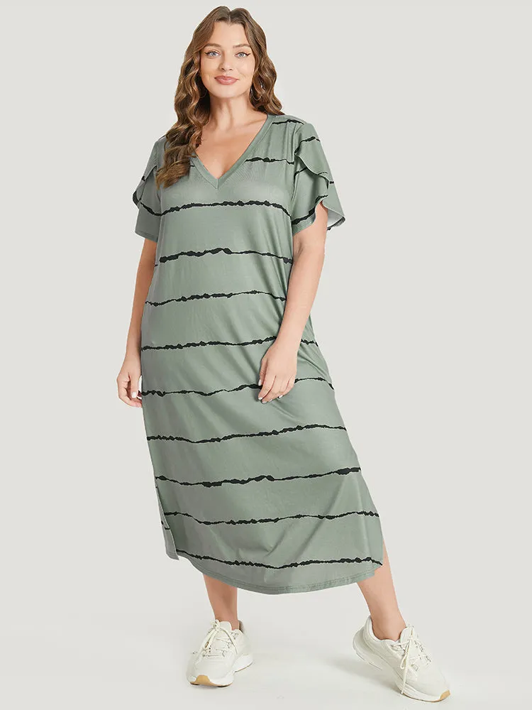 Striped Print Petal Sleeve Pocket Split Hem Dress