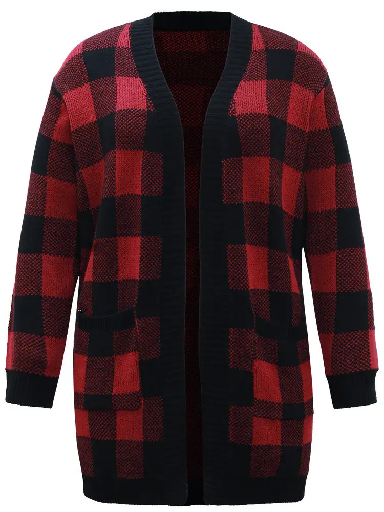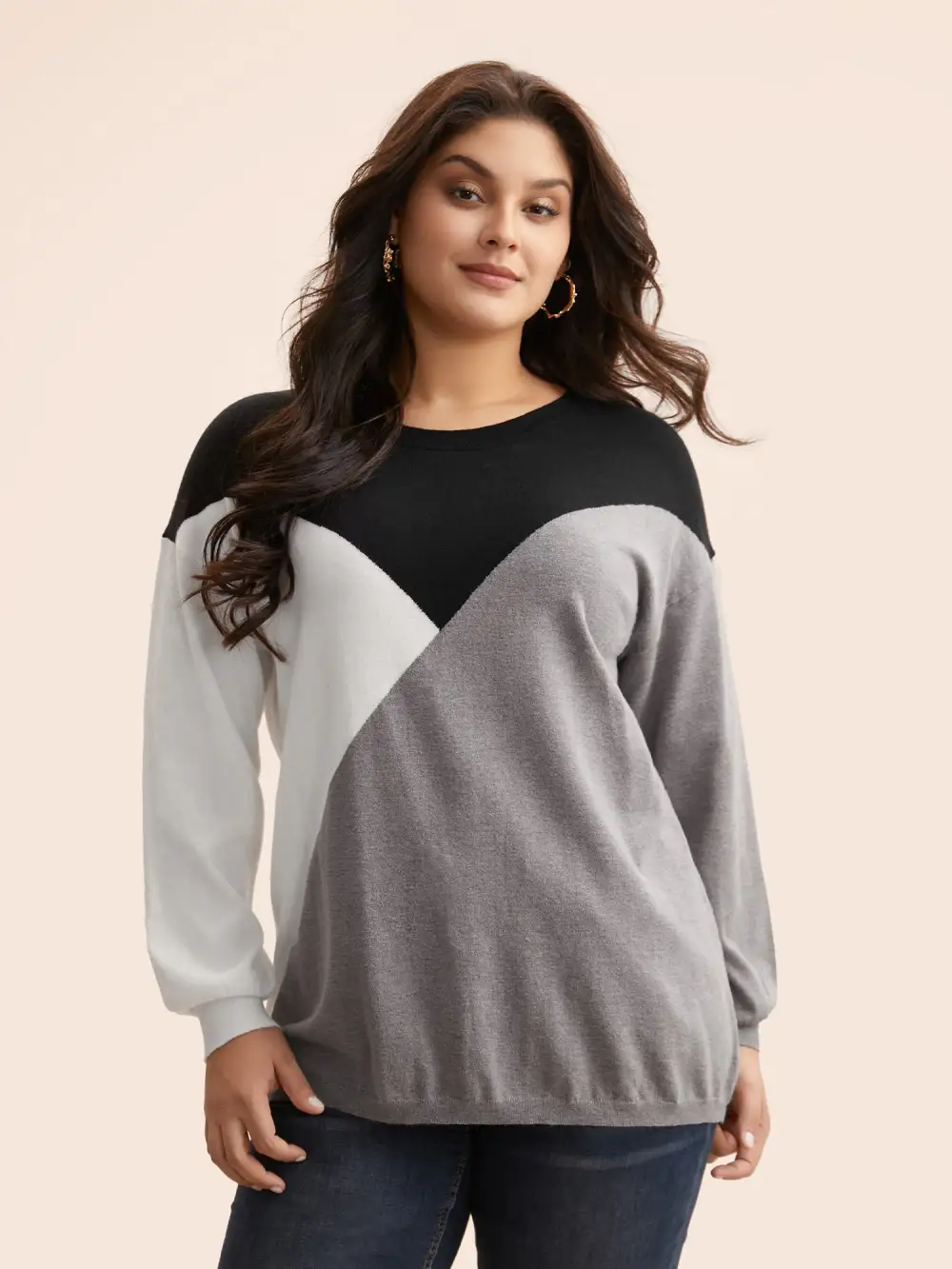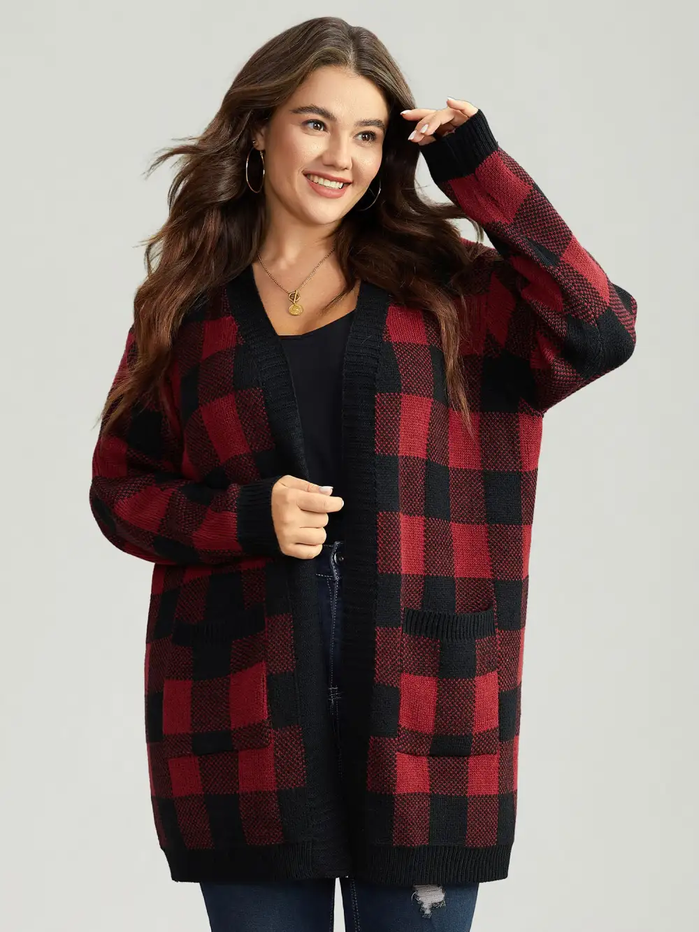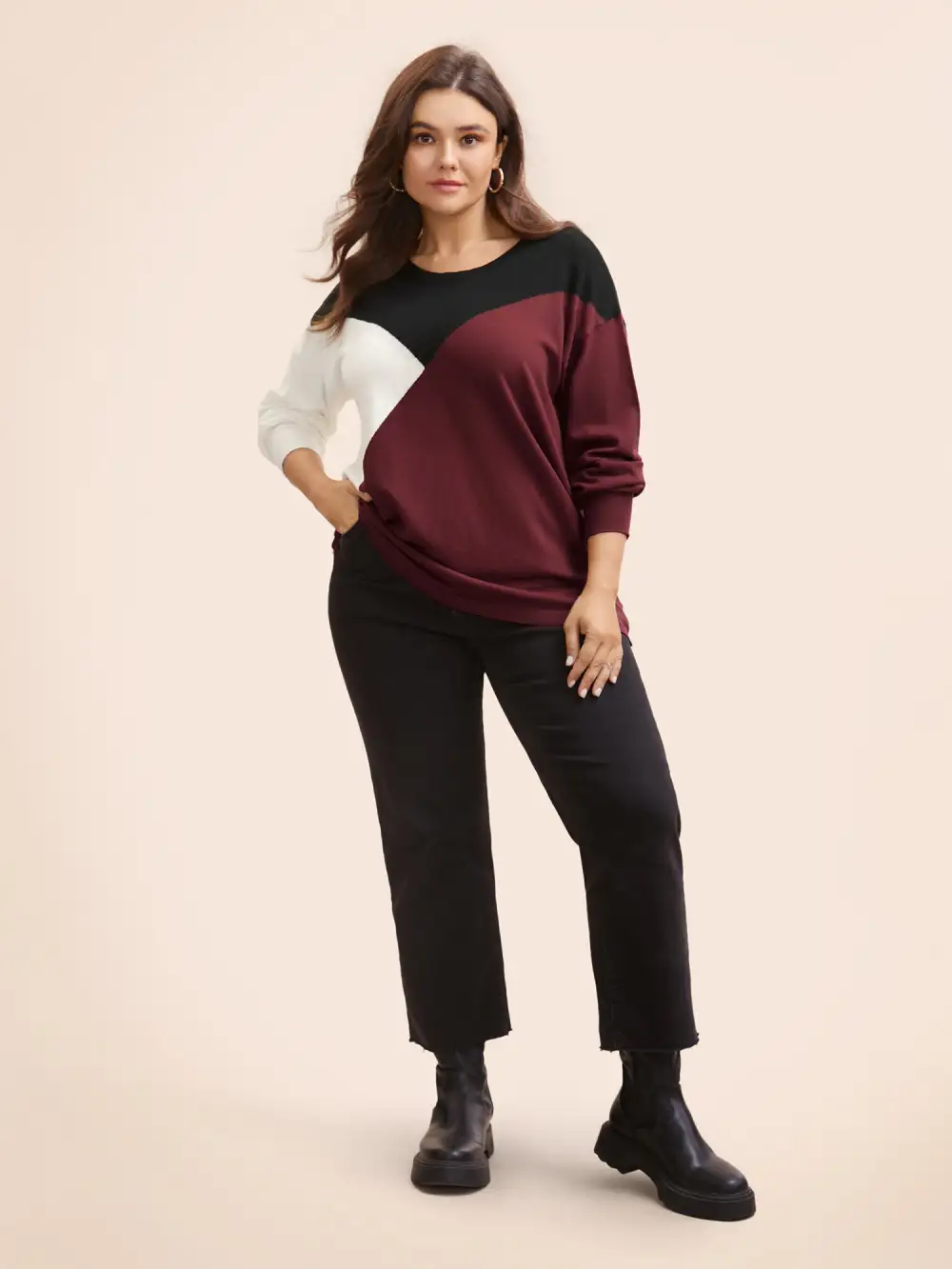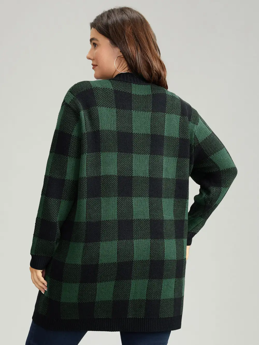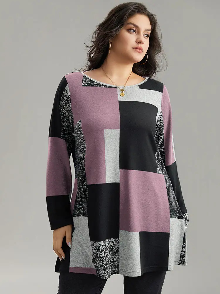 Gingham Patchwork Shirt Collar Arc Hem Sweatshirt
