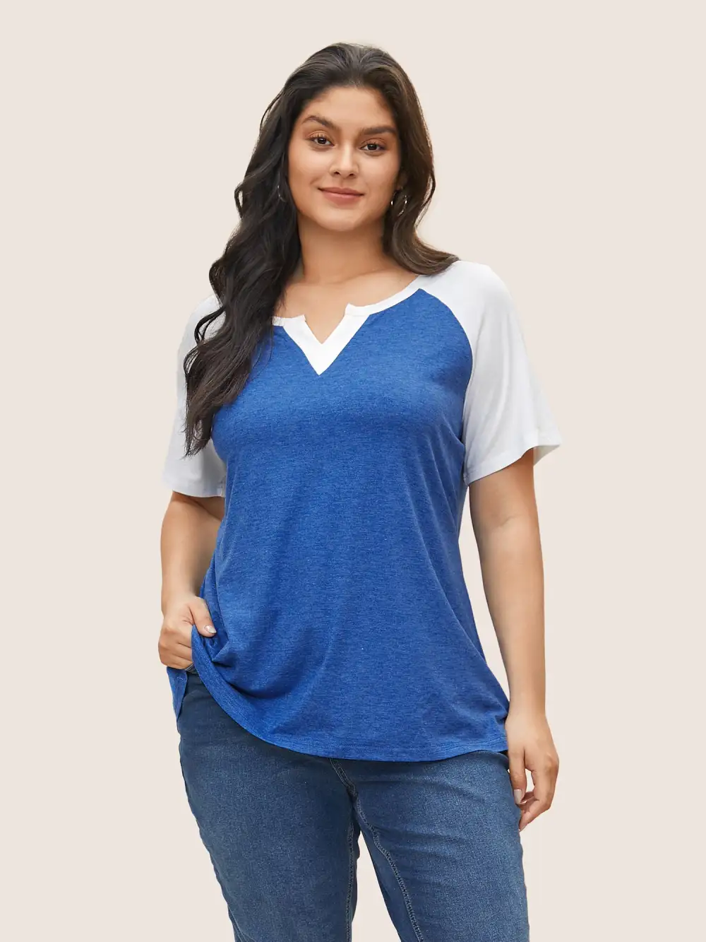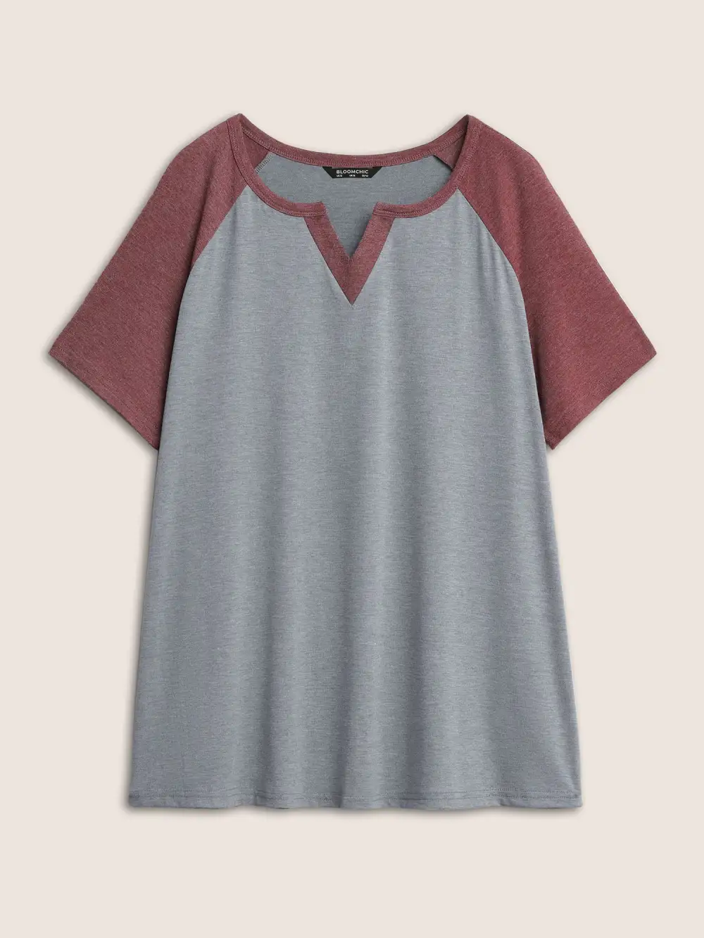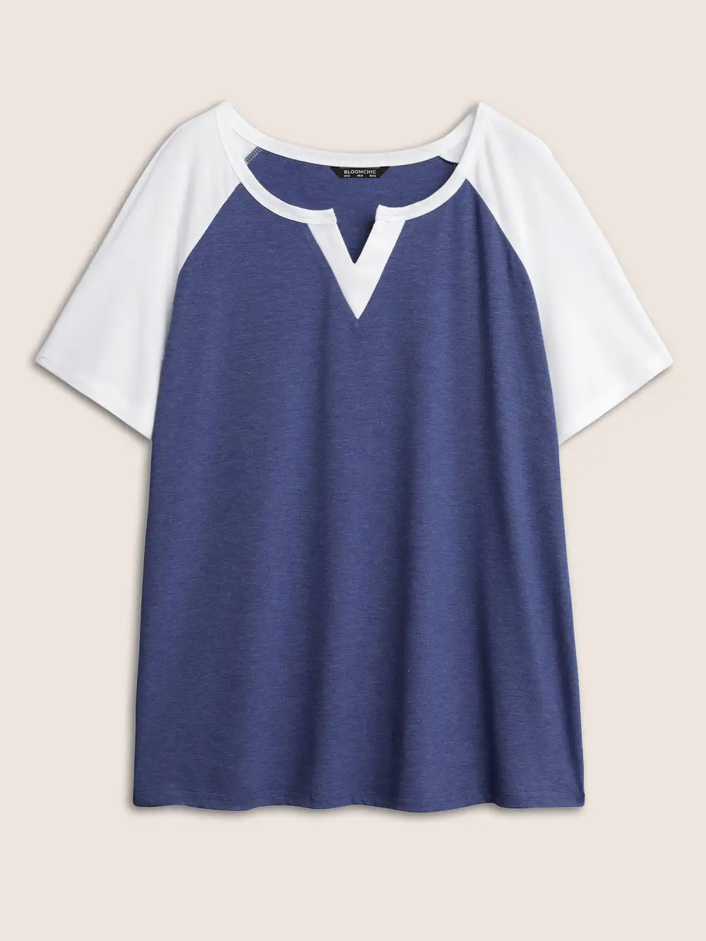 Colorblock Contrast Notched Raglan Sleeve T-Shirt