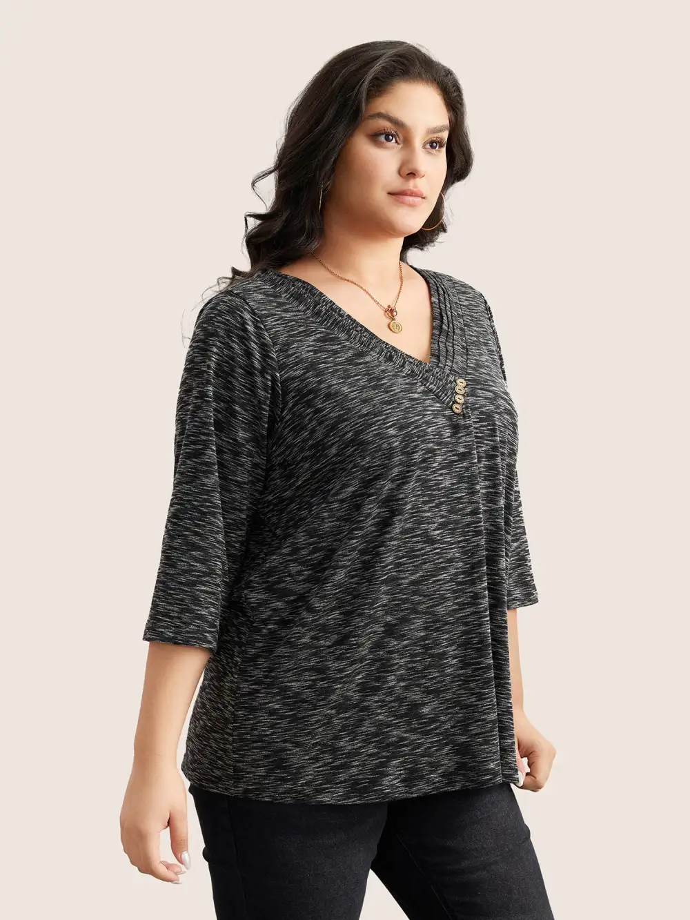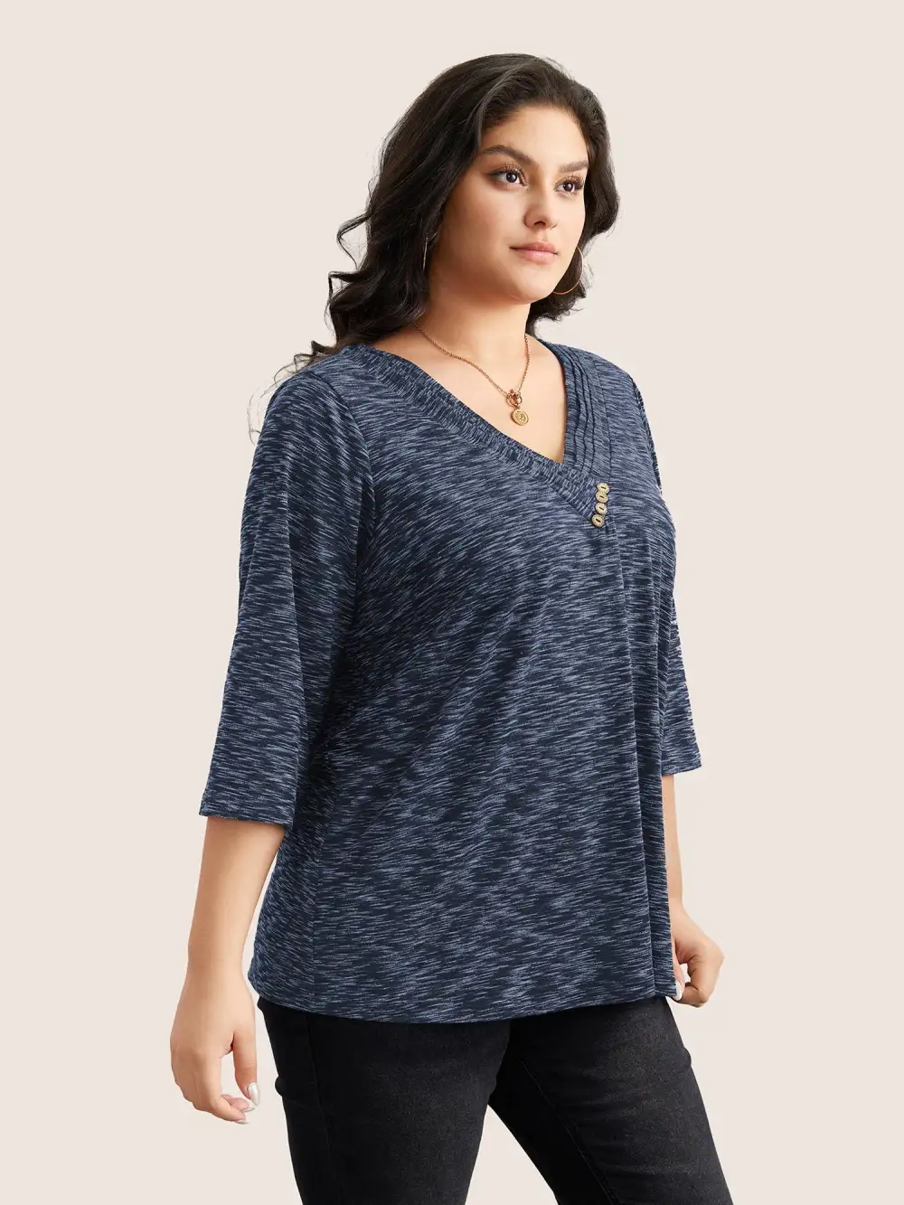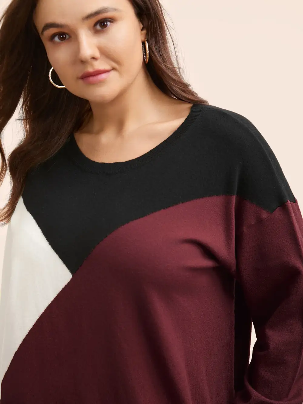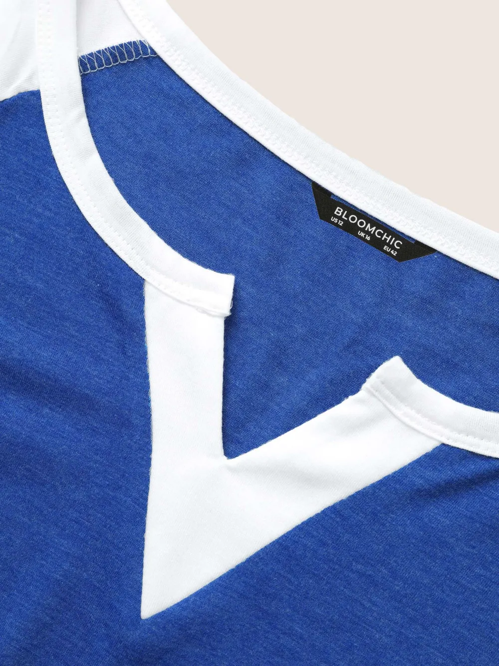 Colorblock Contrast Notched Raglan Sleeve T-Shirt