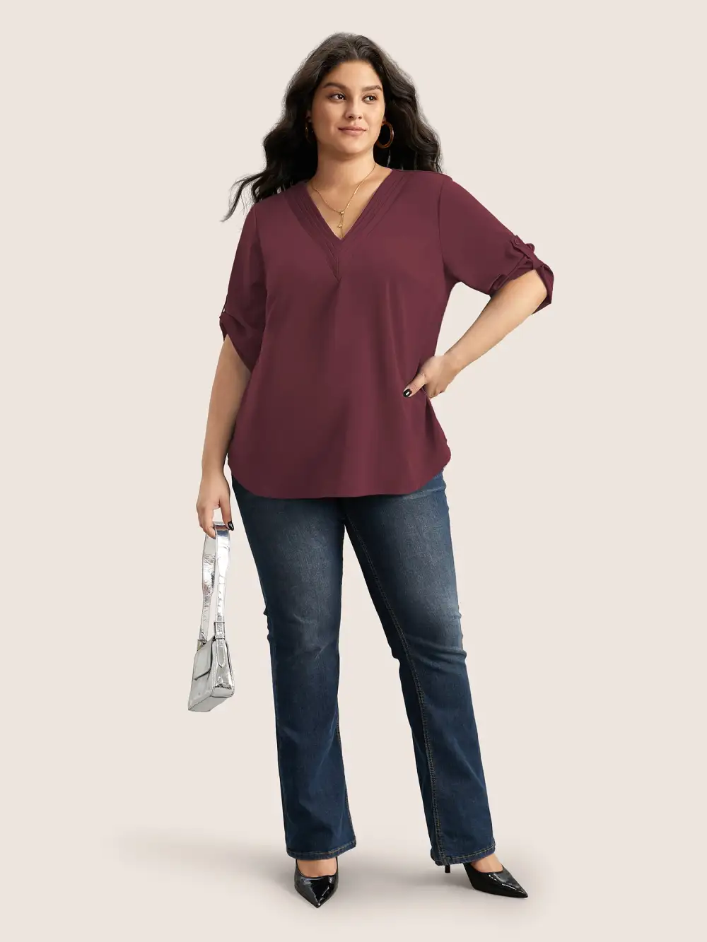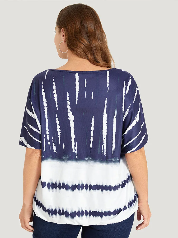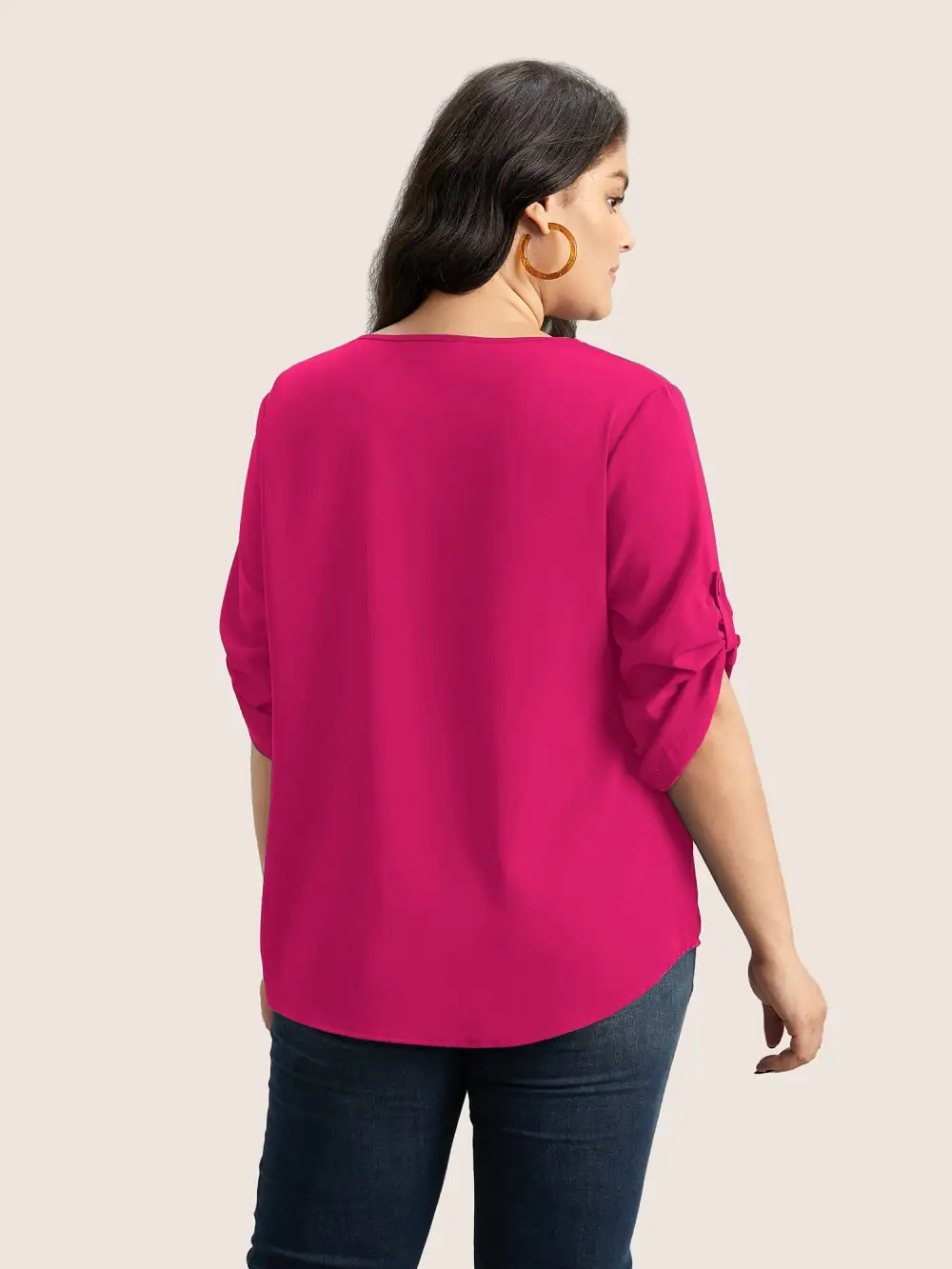 Solid Pocket Contrast Lace Raglan Sleeve Arc Hem T-shirt