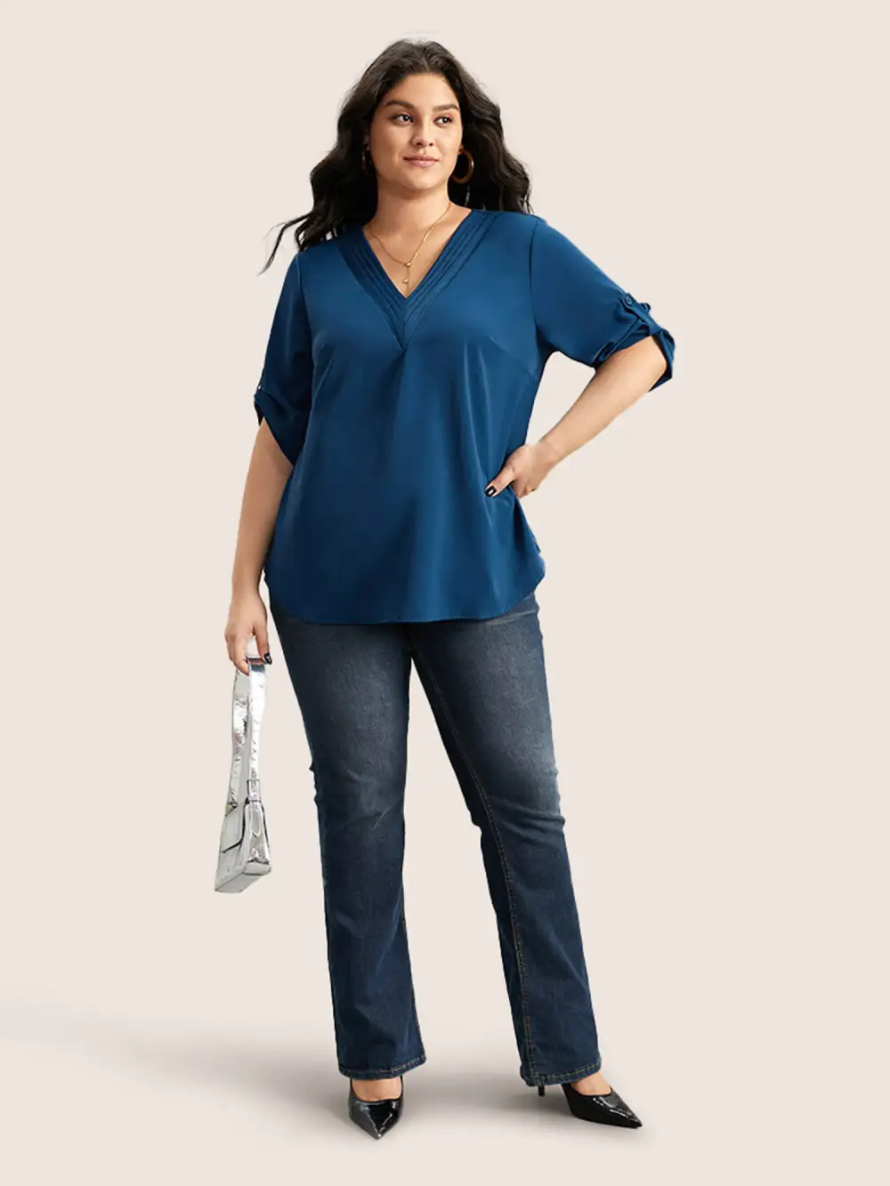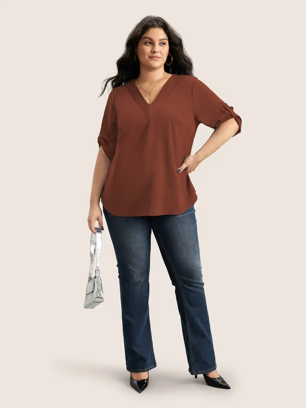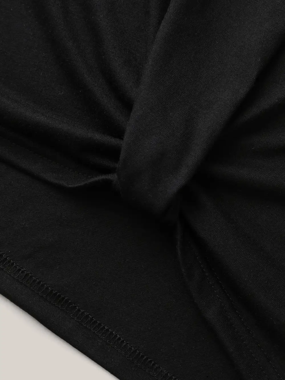 Solid Pocket Contrast Lace Raglan Sleeve Arc Hem T-shirt