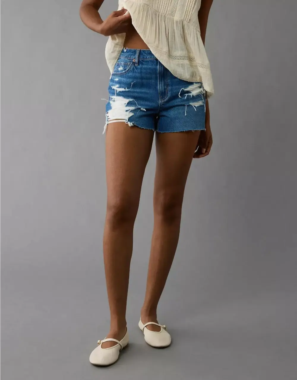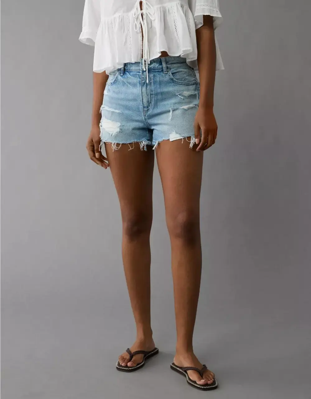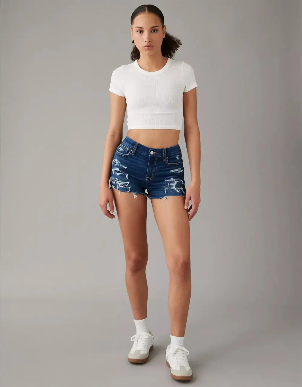 Next Level Curvy Ripped High-Waisted Denim Short Short