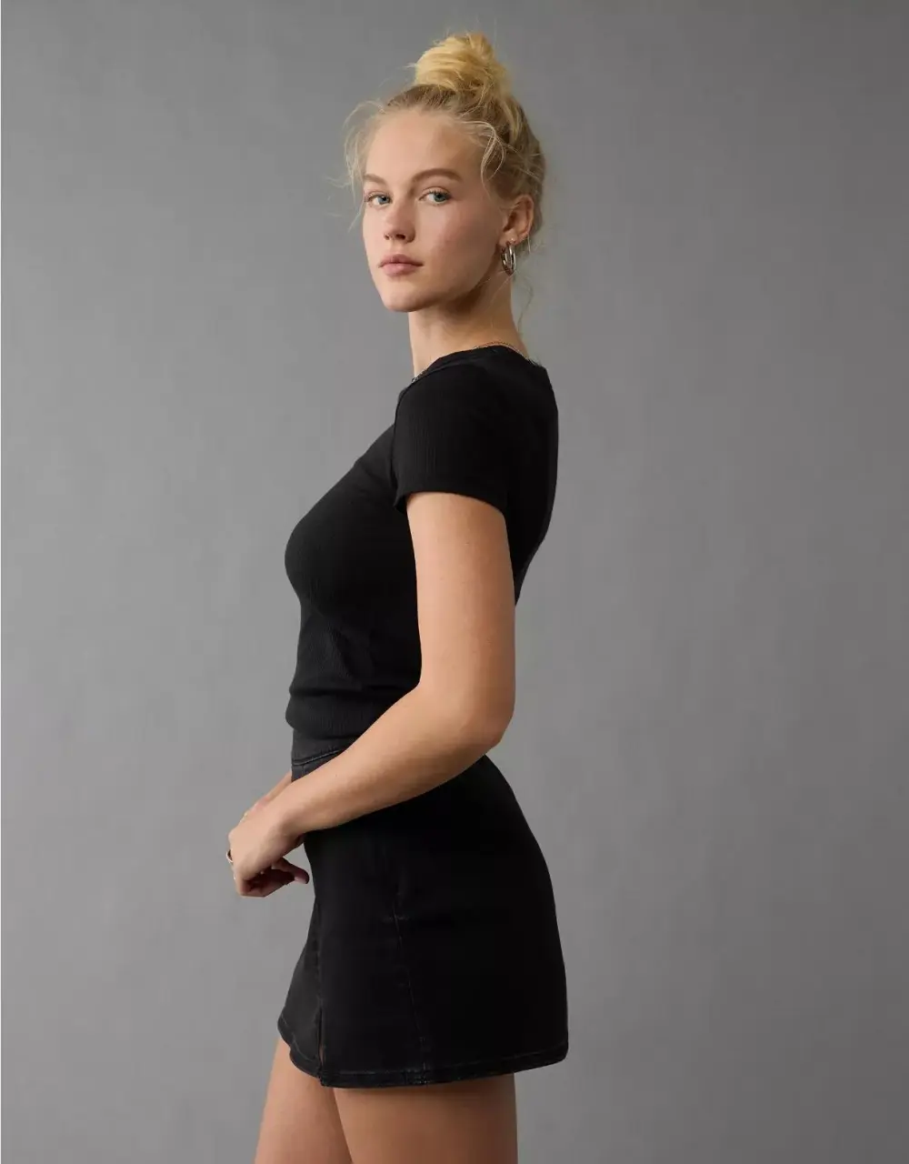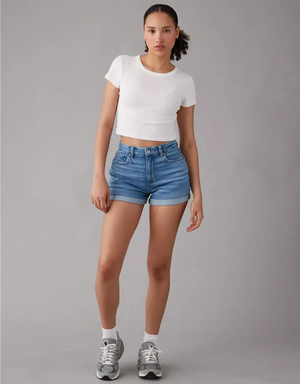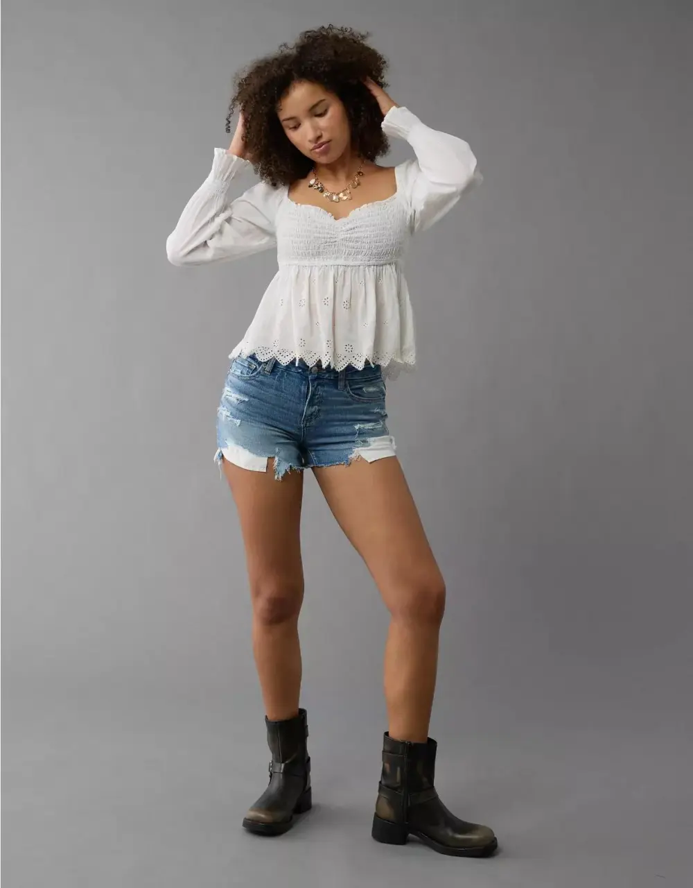 Next Level Curvy Ripped High-Waisted Denim Short Short