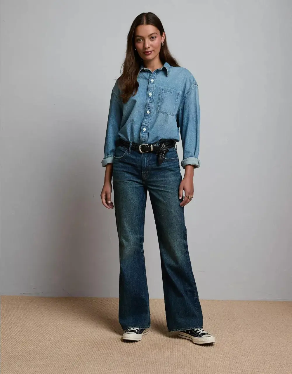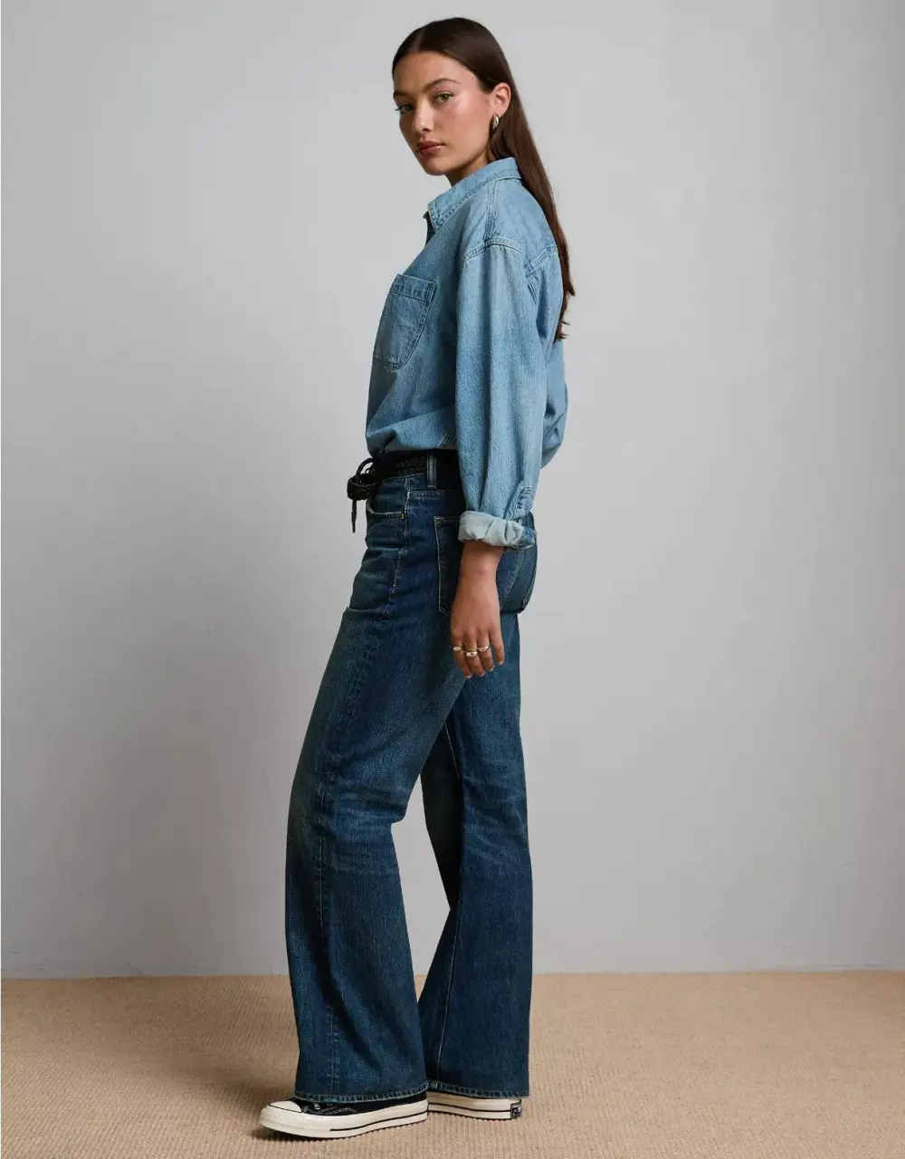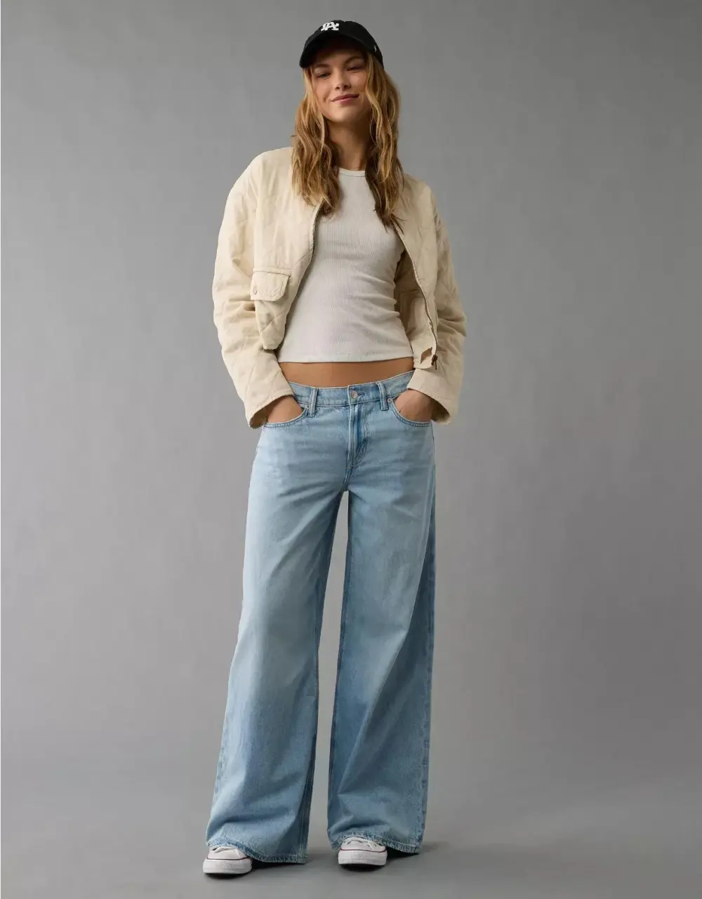 Stretch Low-Rise Baggy Wide-Leg Jean